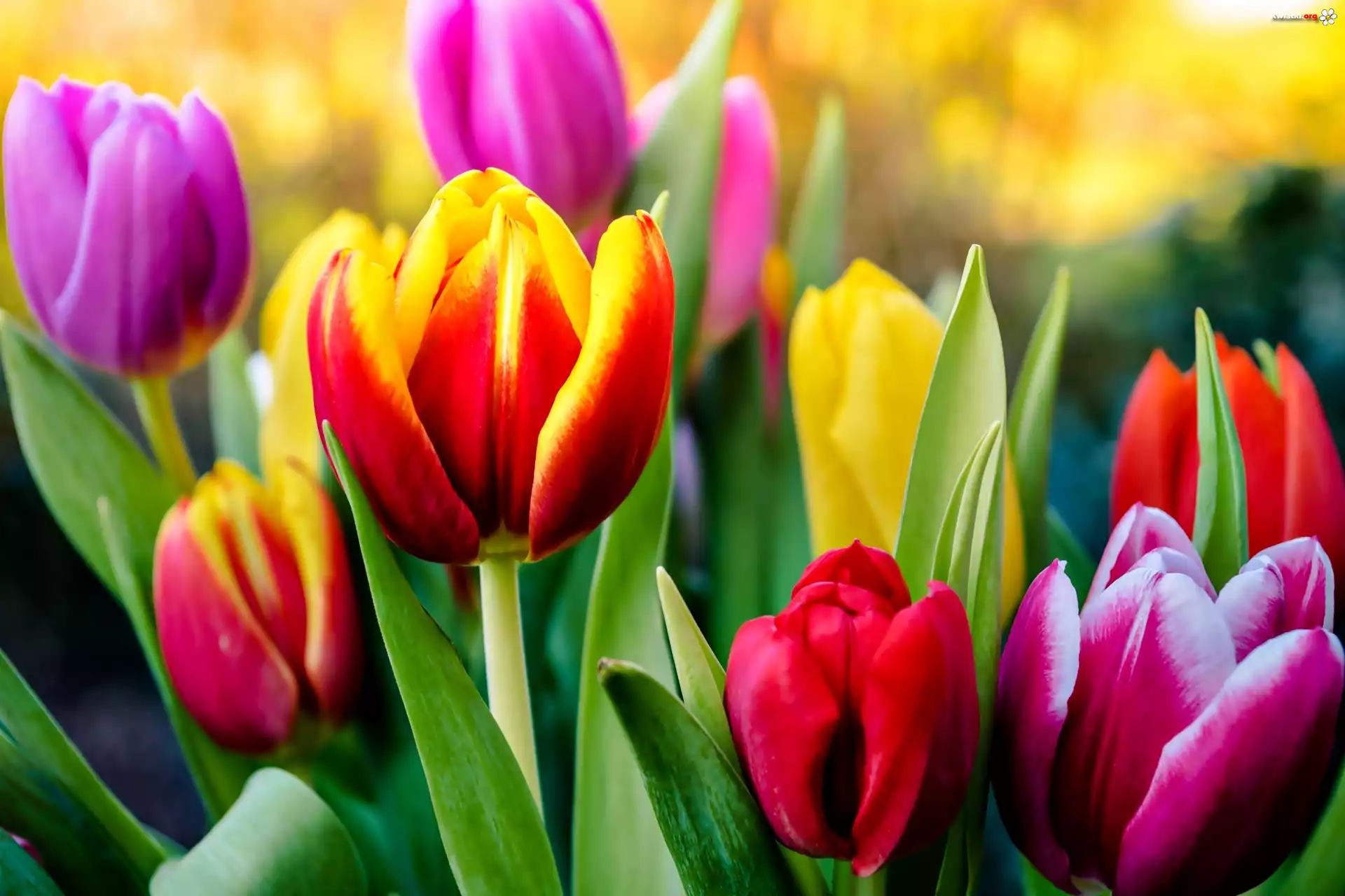 Kwiaty, Kolorowe, Tulipany - Zdjęcia