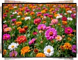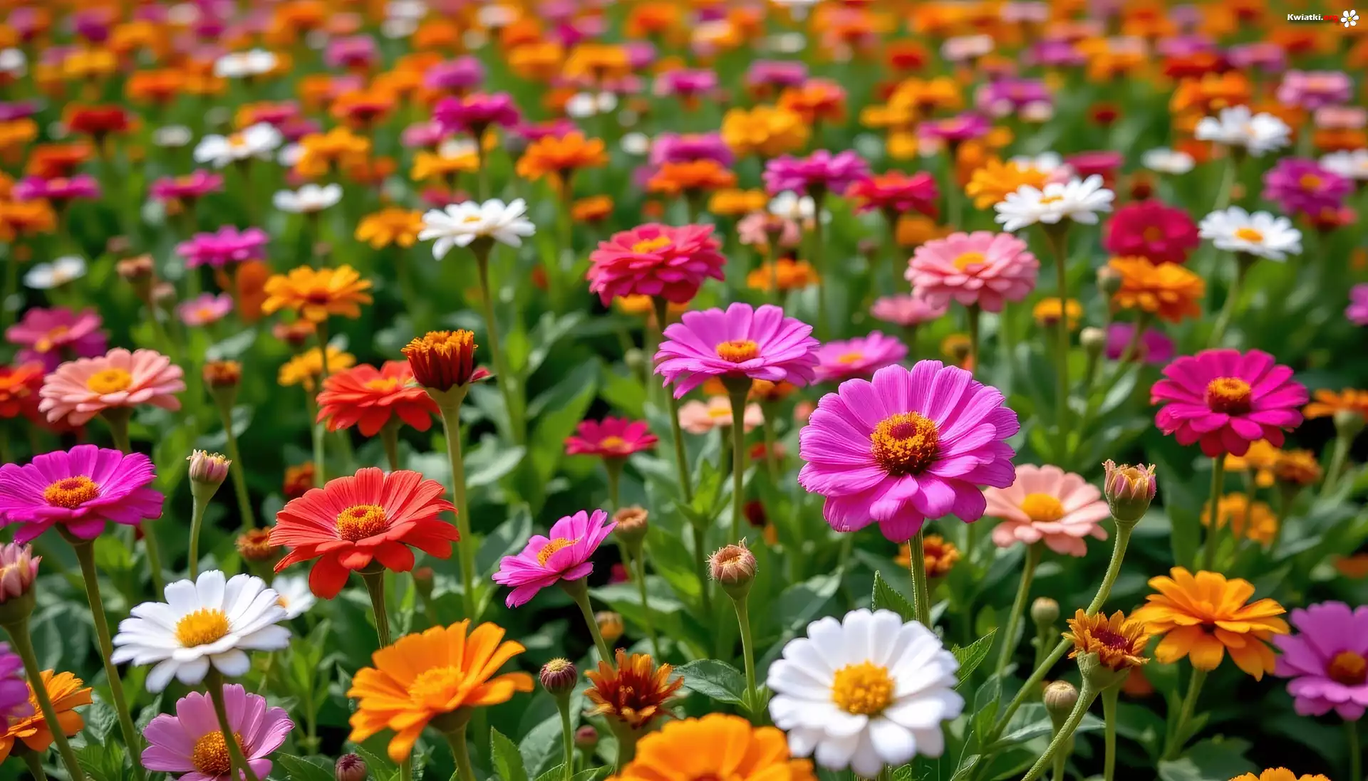 Kwiat Cynie, Kolorowe, Kwiaty, Pole, Zbliżenie