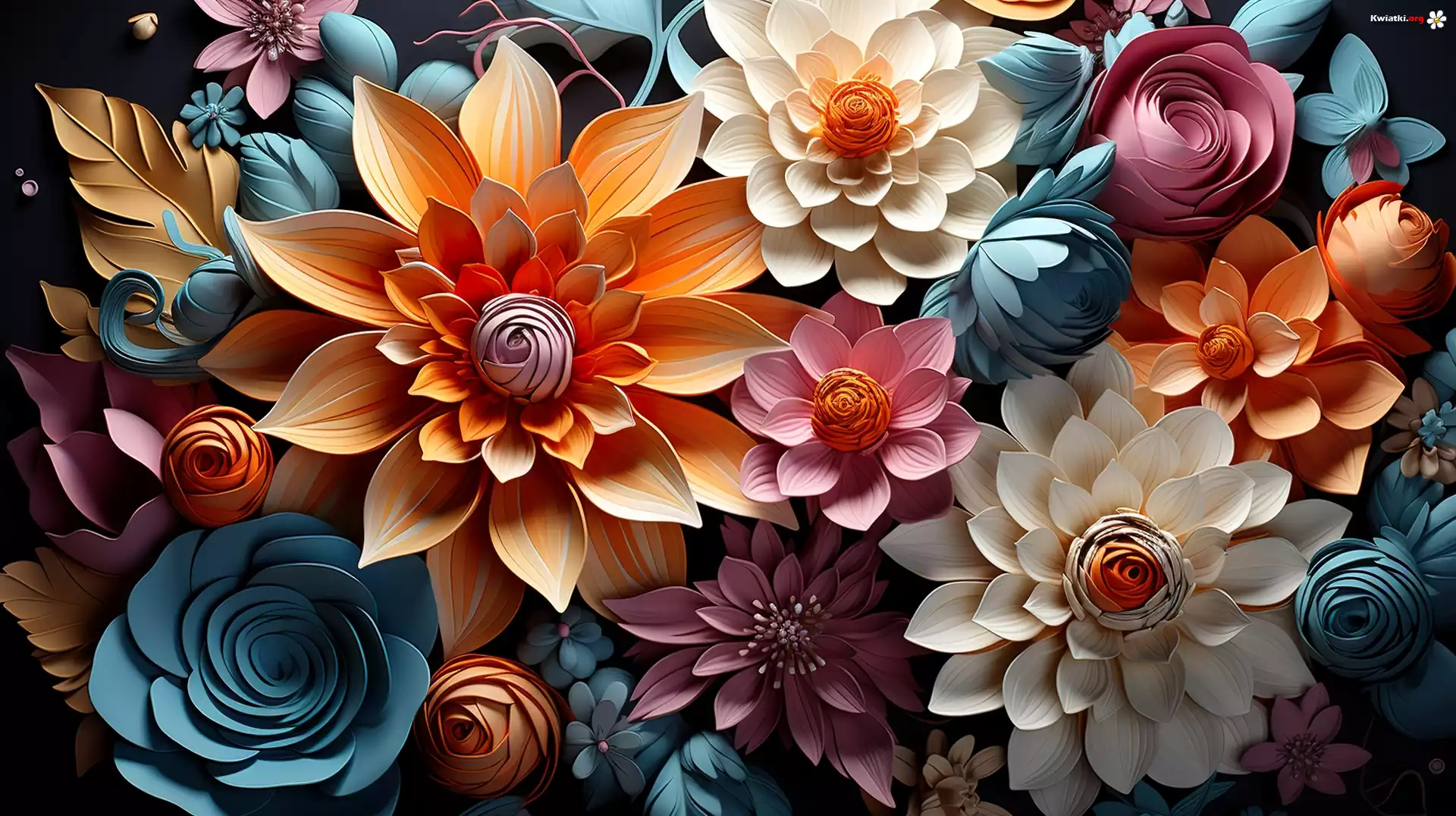 Kwiaty, Kolorowe, Liście, Grafika, 2D - Zdjęcia