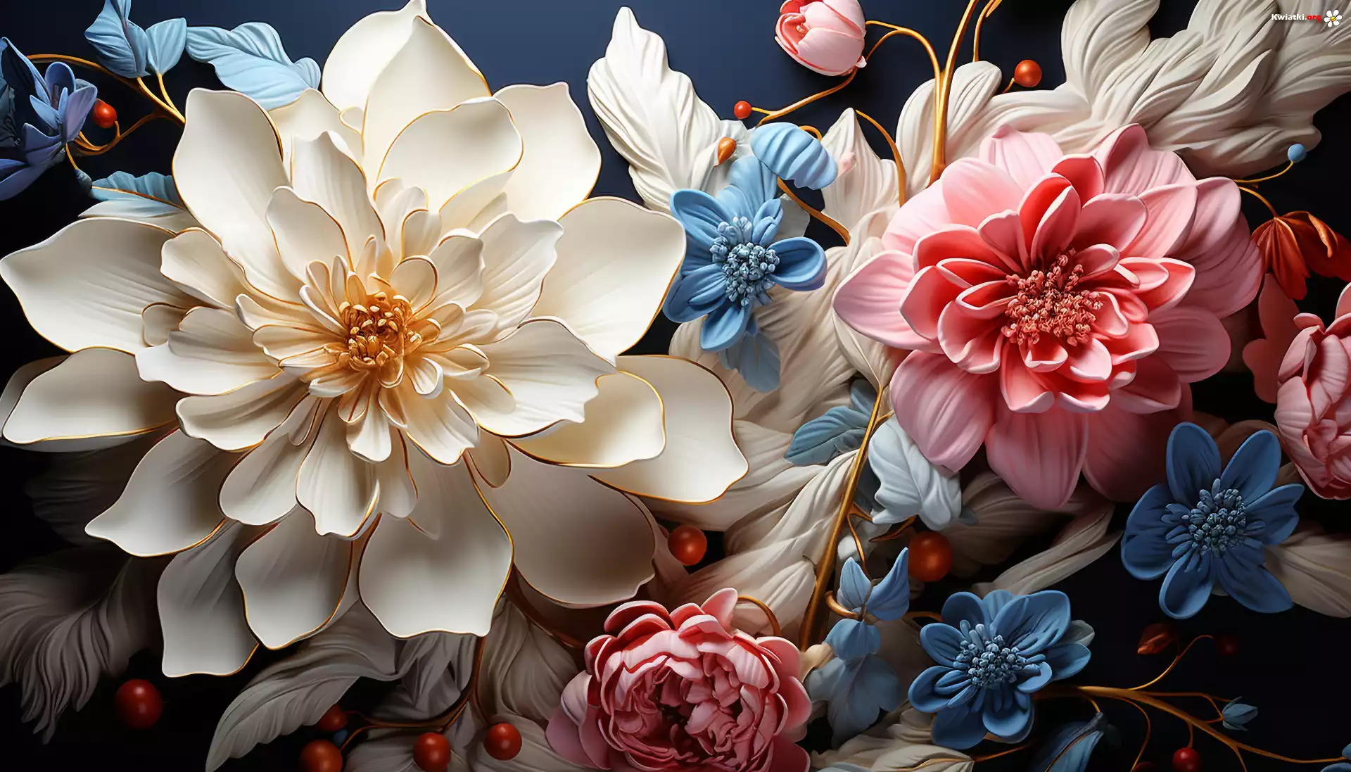 Kwiaty, Kolorowe, Pąki, Liście, Grafika - Zdjęcia