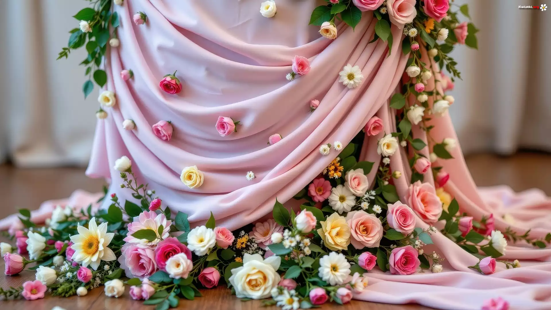 Kwiat Dekoracja, Różowe, Płótno, Kolorowe, Róże, Zielone, Listki