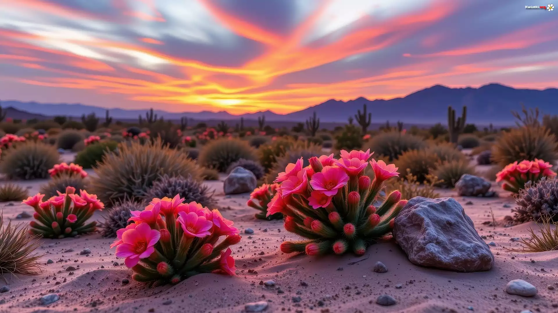 Kolorowe, Niebo, Kwitnące, Kaktusy, Kwiaty, Kępki, Roślin, Góry, Kamienie - Zdjęcia