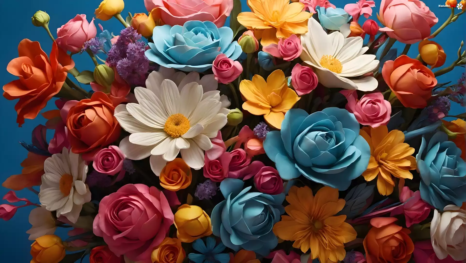 Kwiat Kwiaty, Kolorowe, Róże, Gerbery, Grafika