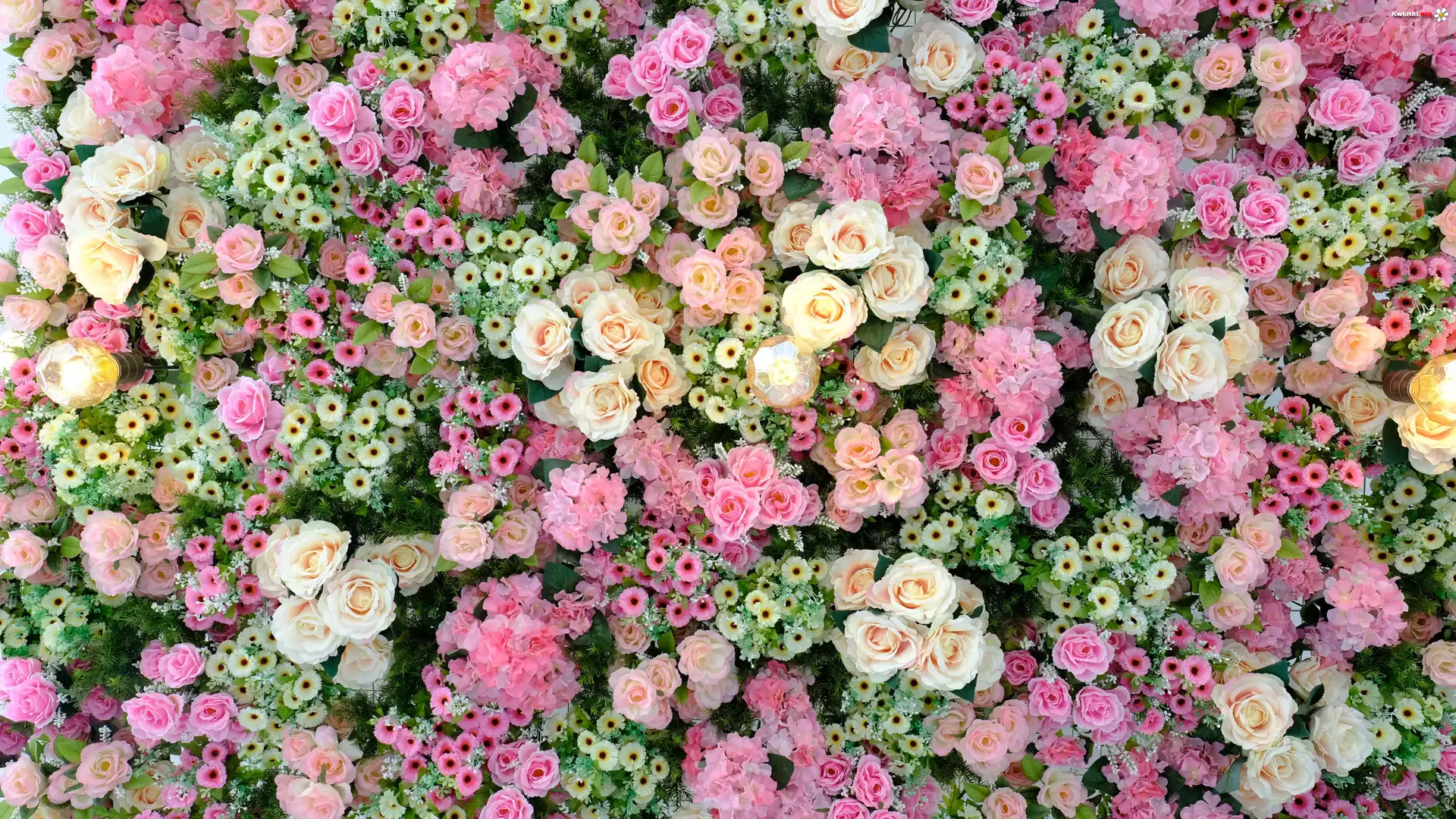 Kolorowe, Kwiaty, Róże, Hortensje - Zdjęcia