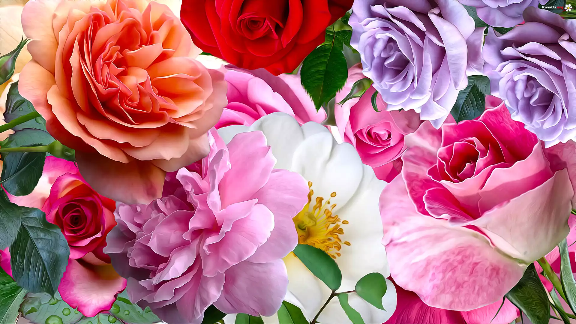 Kolorowe, Rozwinięte, Kwiaty, Róże, Grafika - Zdjęcia