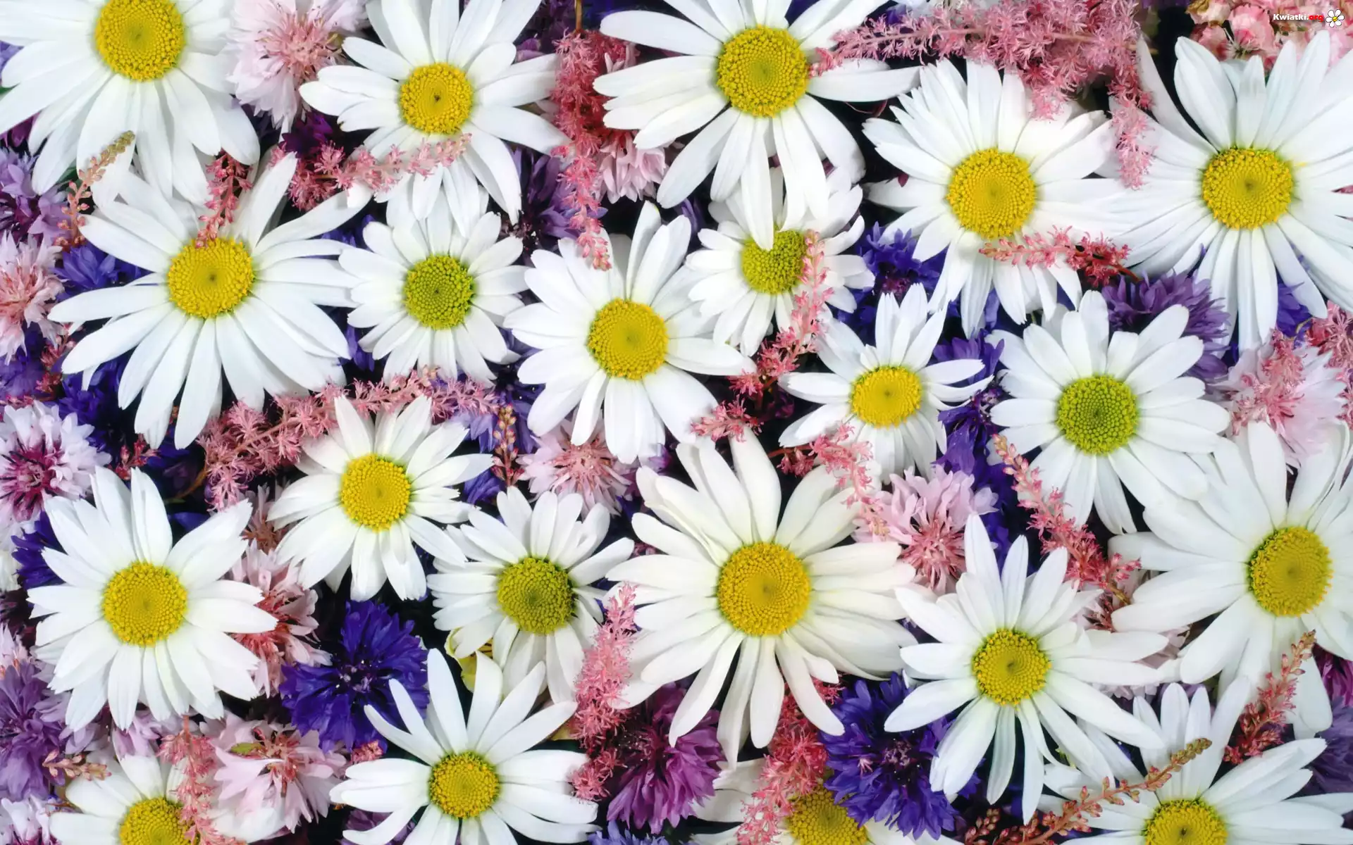Kolorowe, Kwiaty, Chabry, Rumianek, Pospolity - Zdjęcia