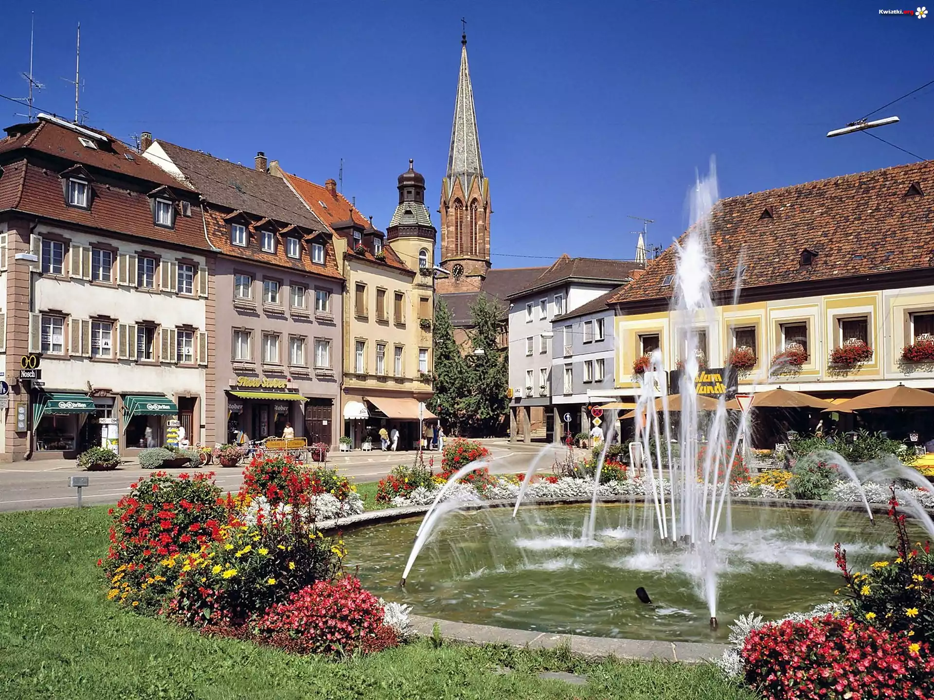 Kwiat Kolorowe, Kamieniczki, Kościół, Rynek, Fontanna