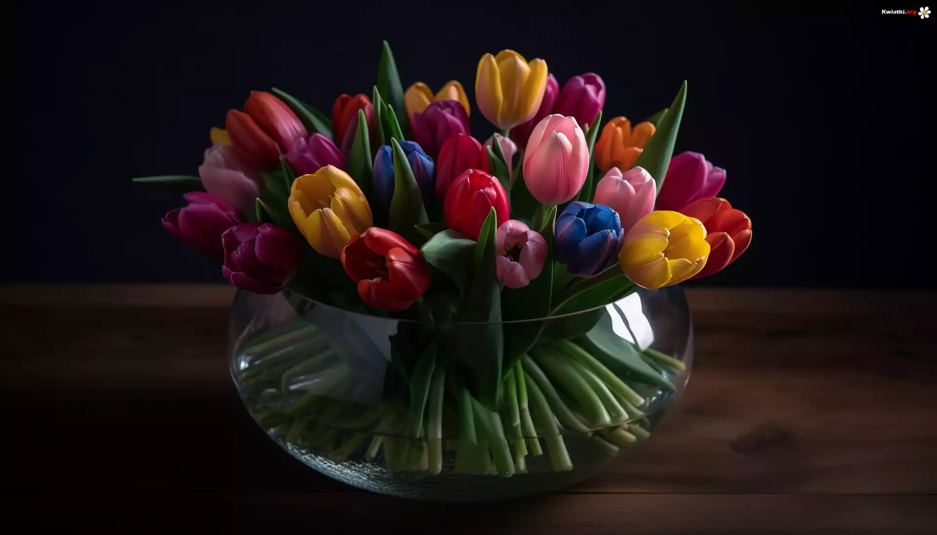 Bukiet, Kolorowe, Tulipany, Szklany, Wazon - Zdjęcia