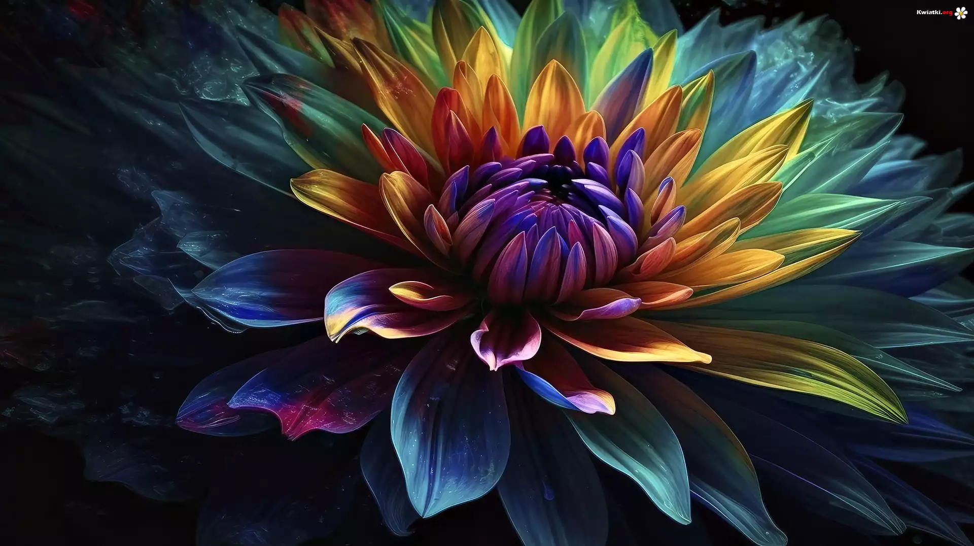 Kwiat Dalia, Kolorowy, Kwiat, Zbliżenie, Grafika