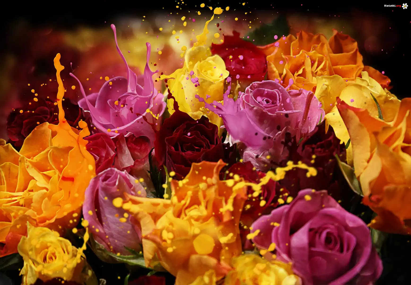Bukiet, Kolorowych, Róż - Zdjęcia