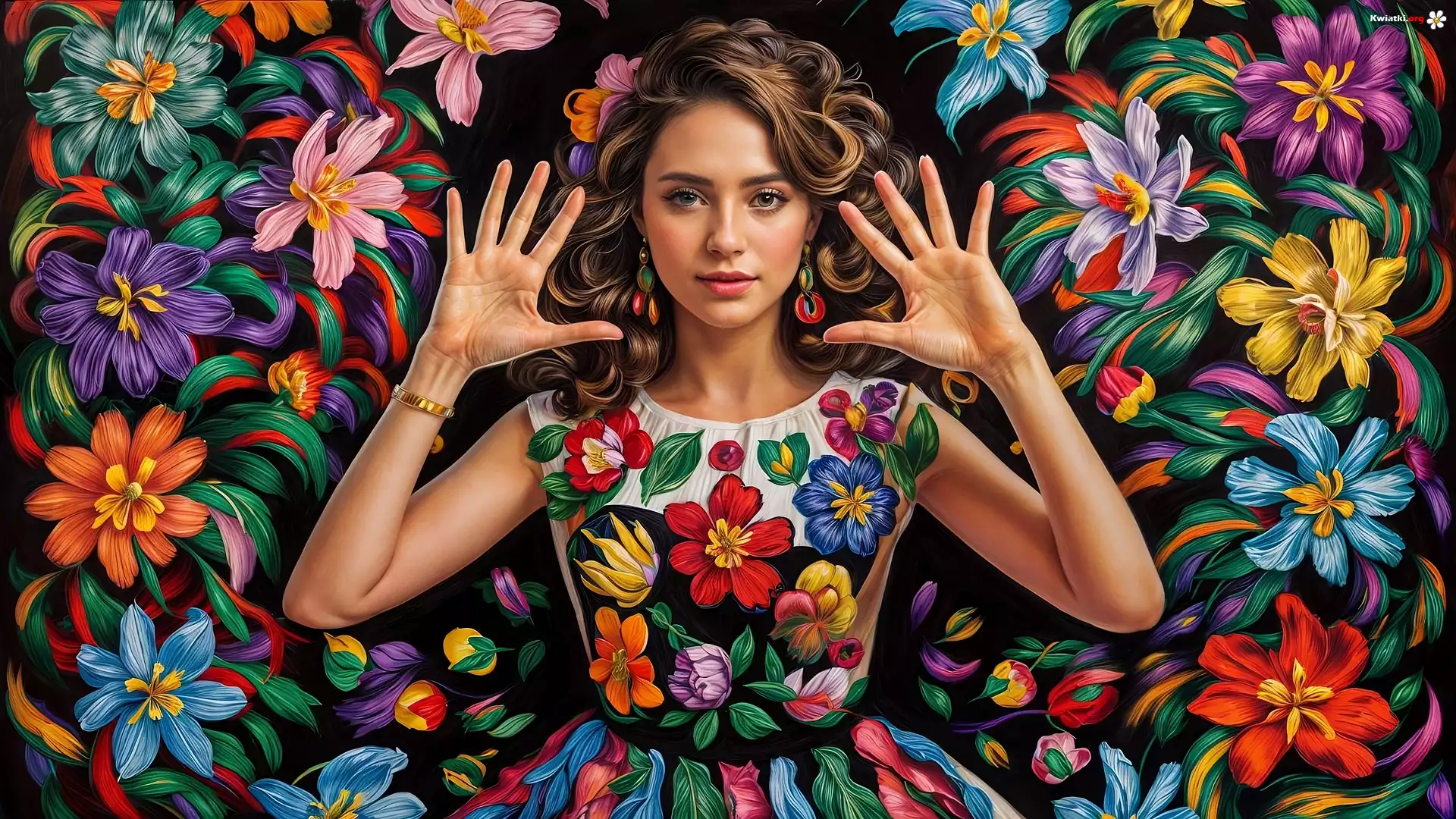 Kobieta, Grafika, Kwiaty, Kolory - Zdjęcia