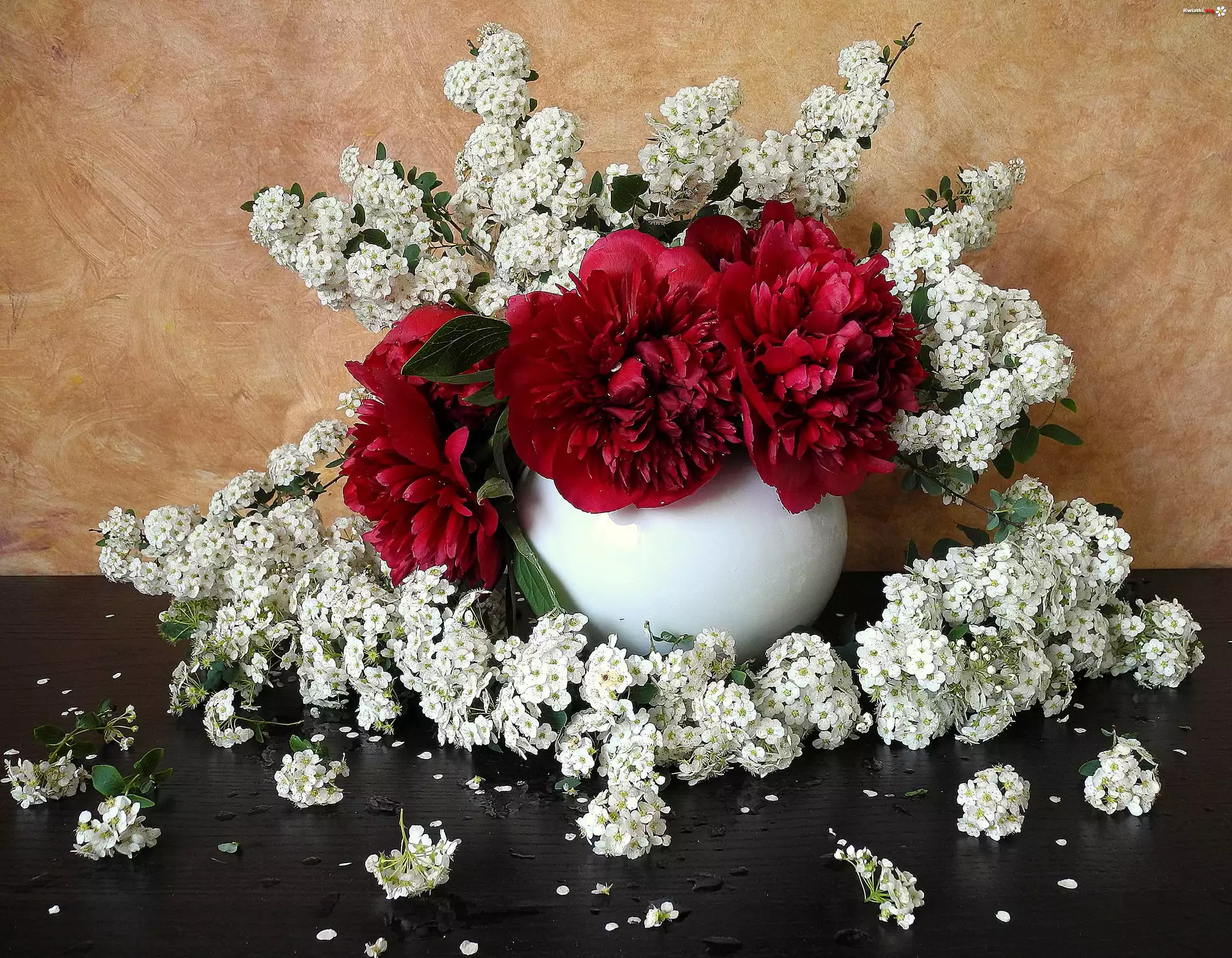 Kompozycja, Piwonie, Białe, Kwiatuszki - Zdjęcia