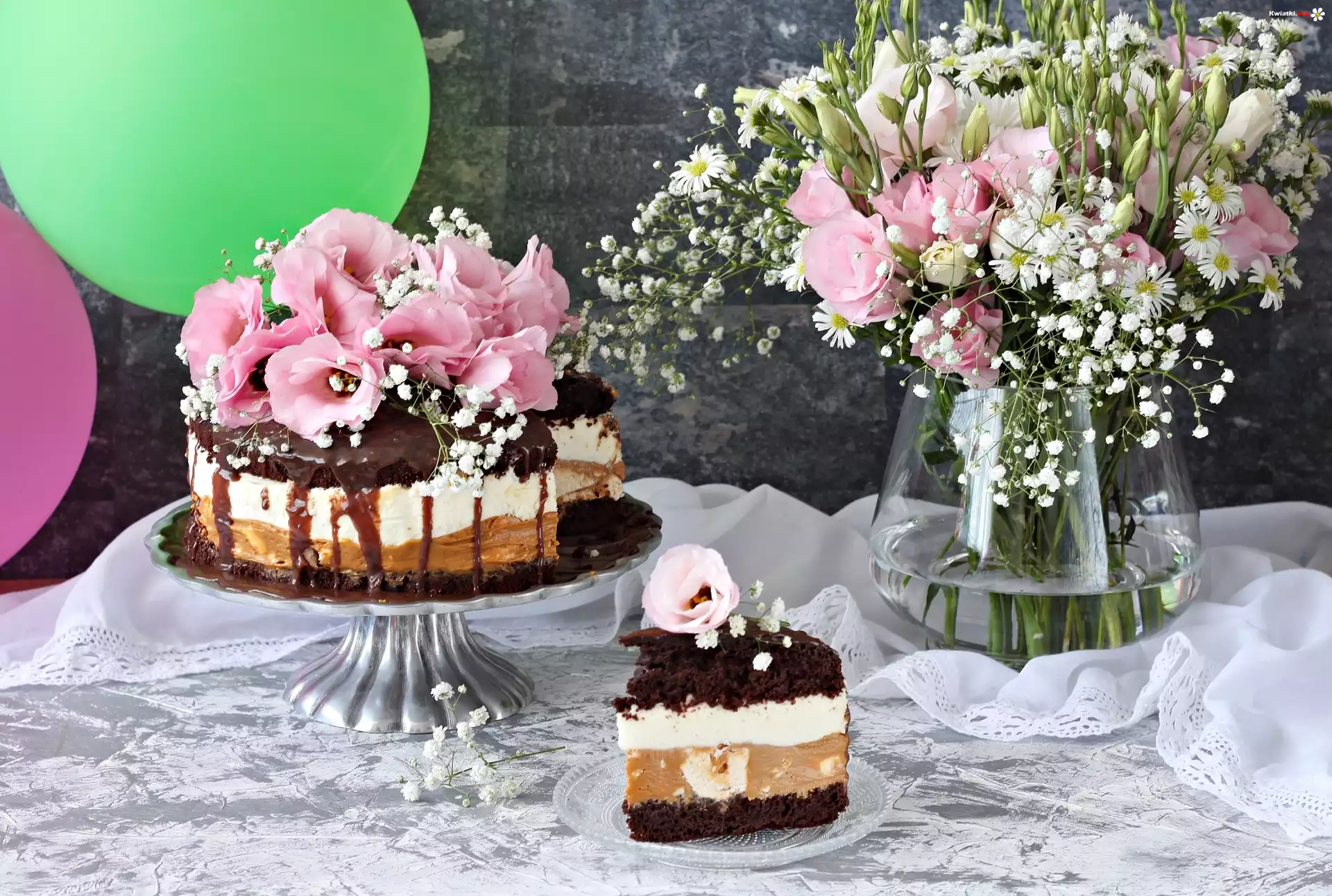 Kompozycja, Tort, Eustoma, Bukiet, Kwiaty - Zdjęcia