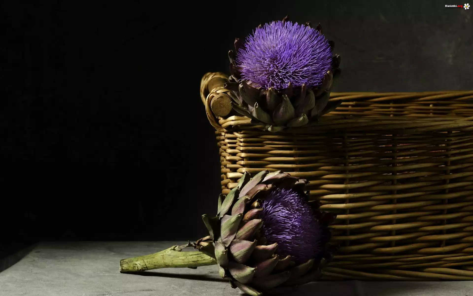 Kwiat Kompozycja, Koszyk, Fioletowe, Kwiaty