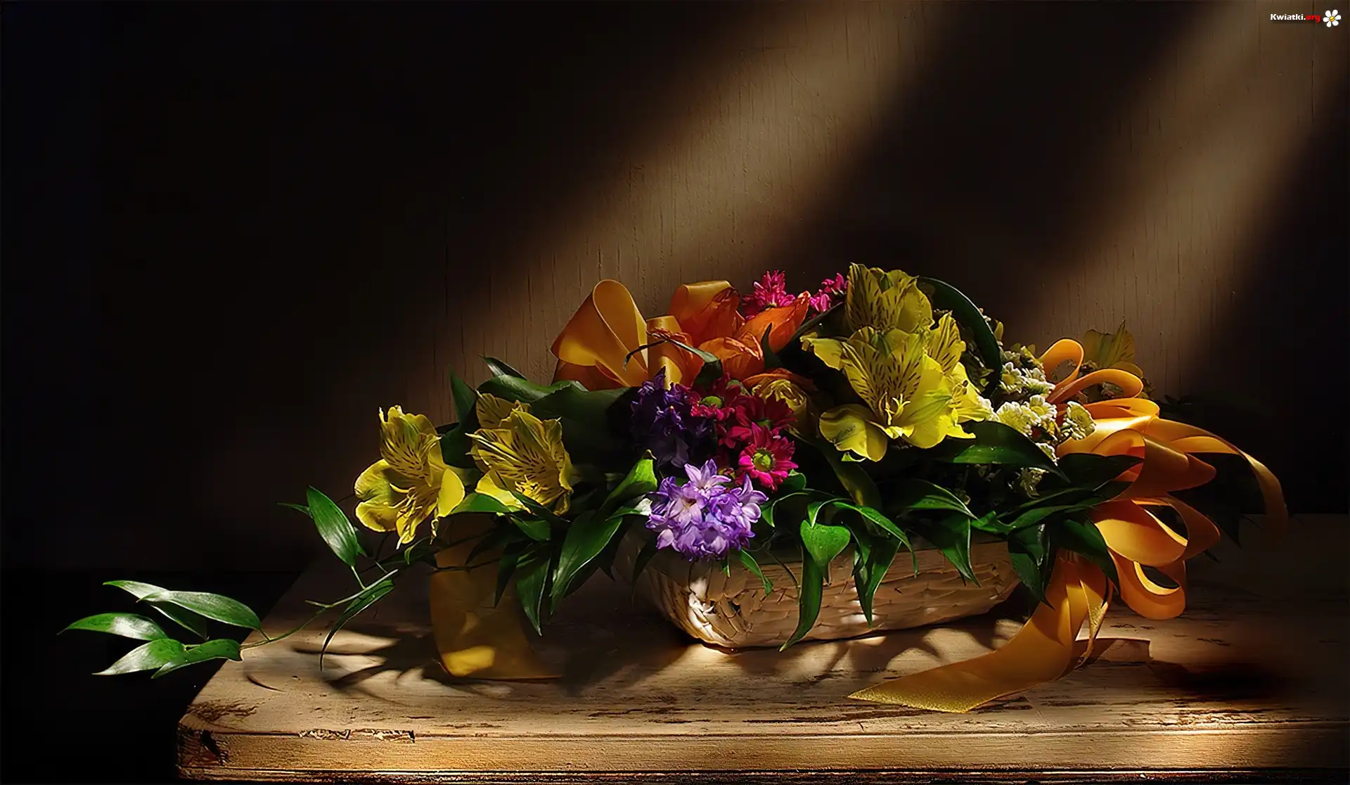 Kwiaty, Kompozycja, Kokarda - Zdjęcia