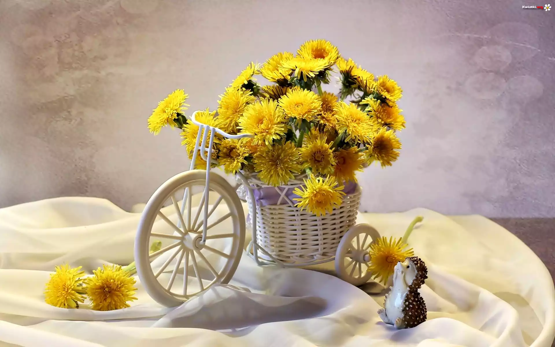Kompozycja, Mniszek, Bukiet, Dekoracyjny, Rowerek, Tkanina - Zdjęcia