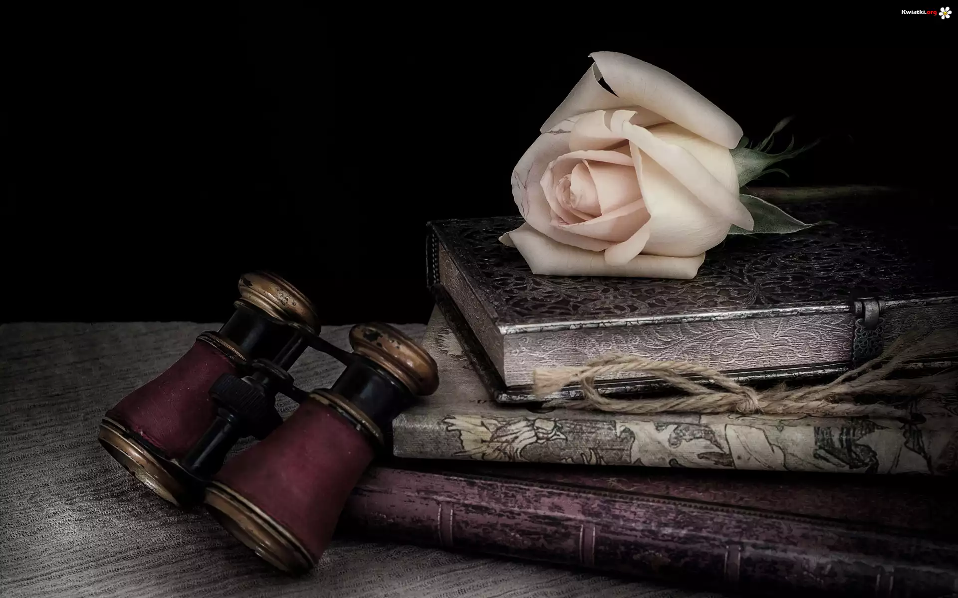 Kompozycja, Książki, Róża, Lornetka - Zdjęcia