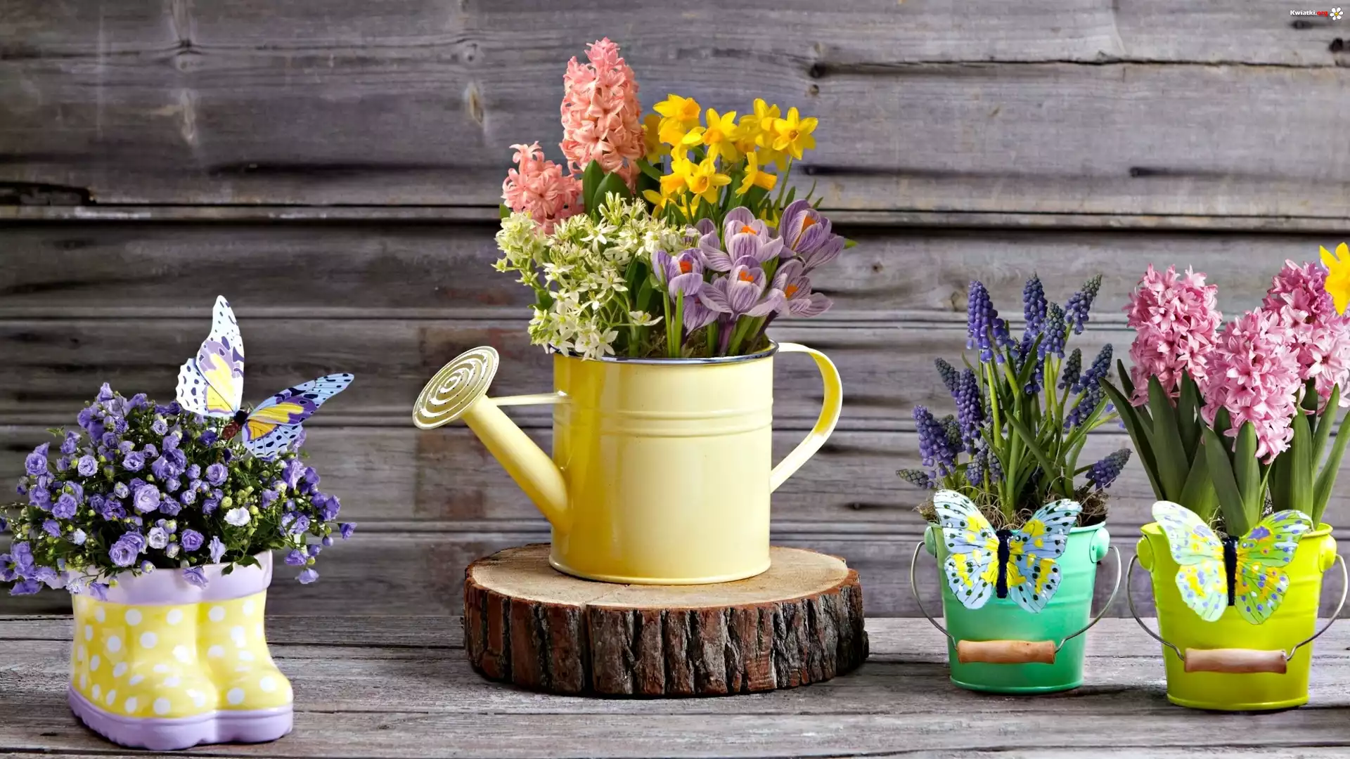 Kompozycja, Wiosenne, Kwiaty, Hiacynty, Szafirki, Konewka - Zdjęcia