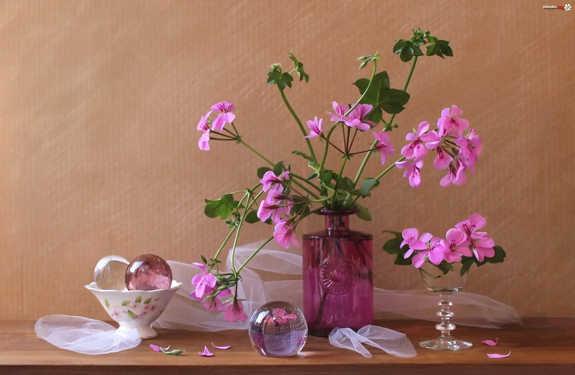 Kompozycja, Wazonik, Kwiatki, Szklane, Kule - Zdjęcia