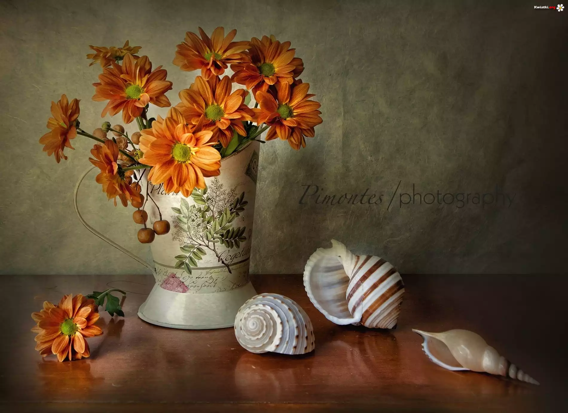 Kompozycja, Margerytki, Wazon, Muszelki - Zdjęcia