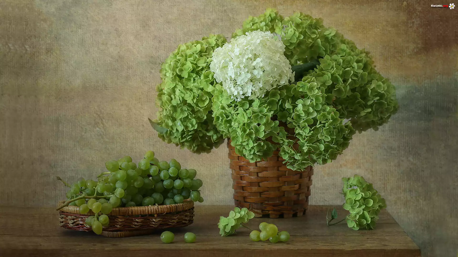 Kompozycja, Hortensje, Winogrona, Koszyki - Zdjęcia