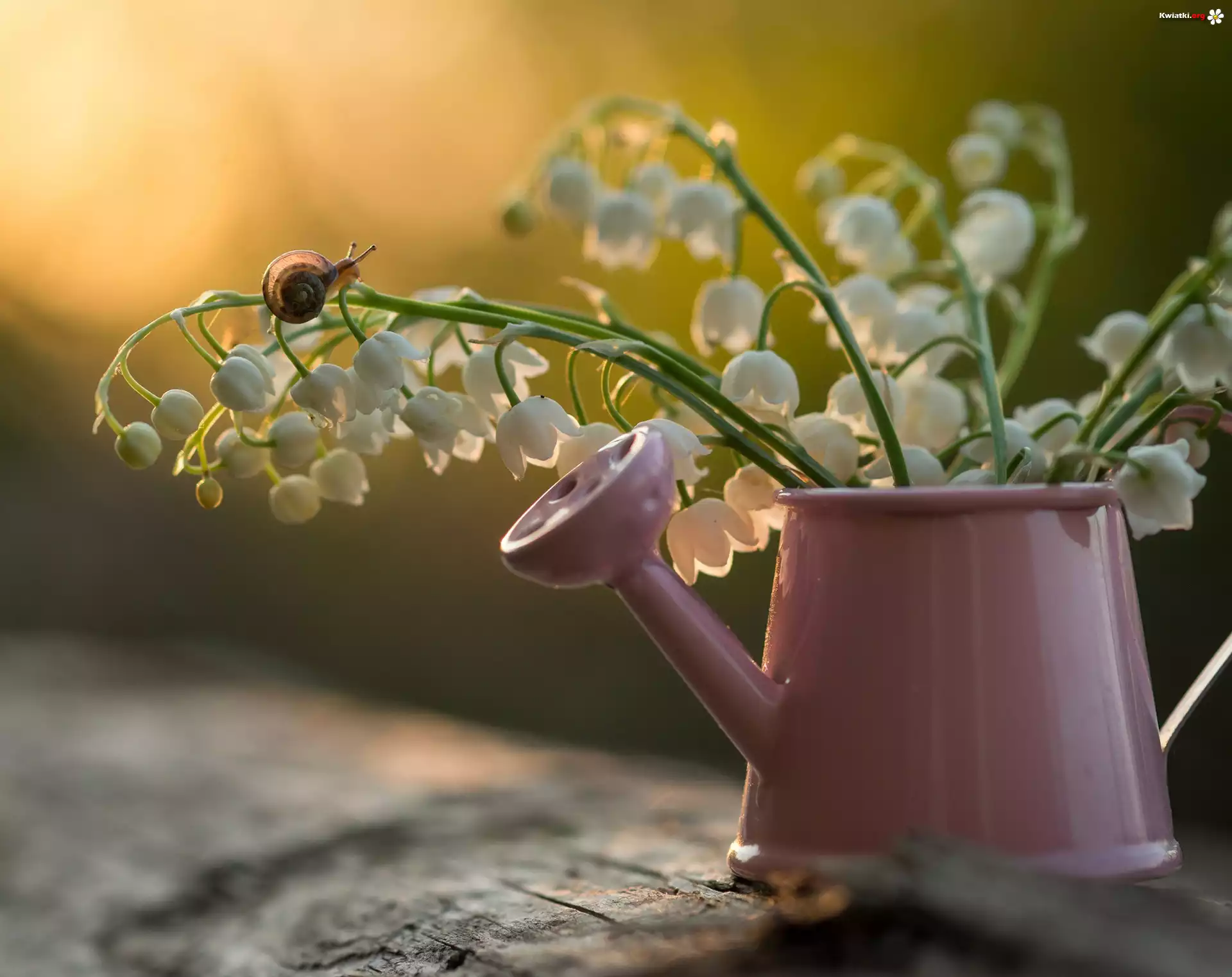 Konewka, Kwiaty, Konwalie, Ślimak - Zdjęcia