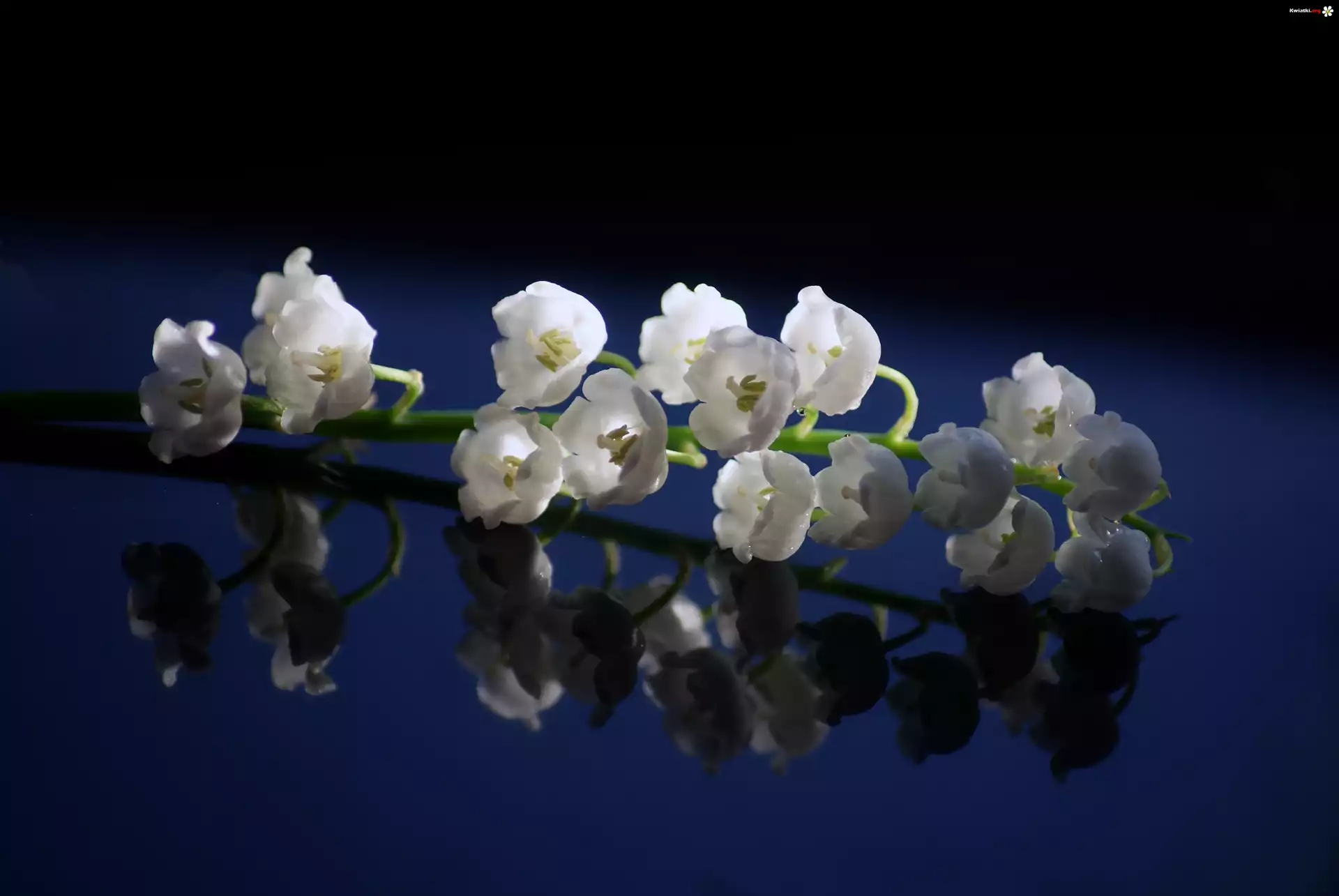 Kwiat Konwalia, Blat, Odbicie, Granatowe, Tło