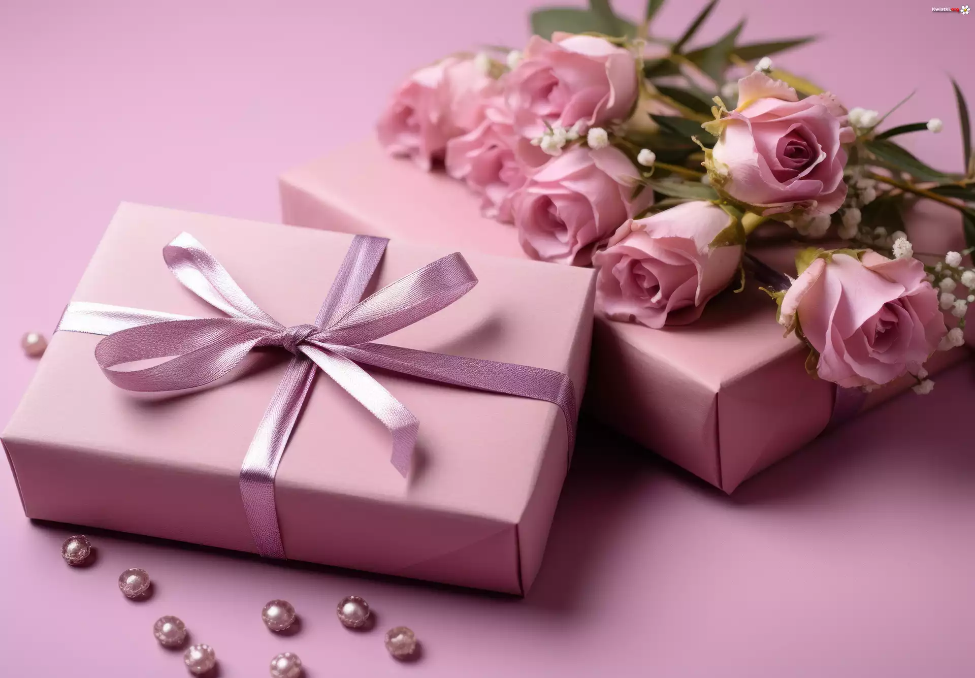Kwiat Dwa, Pudełka, Prezenty, Koraliki, Kwiaty, Różowe, Róże