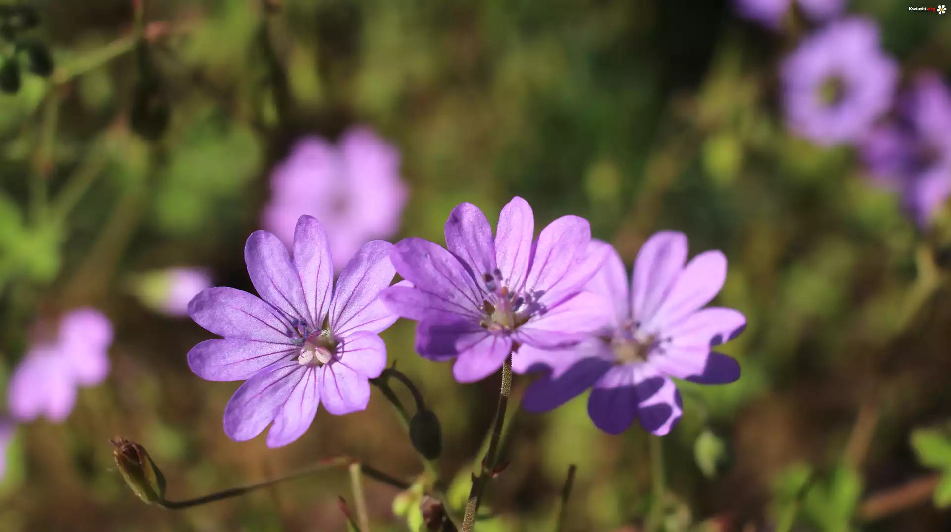 Bodziszek kosmaty, Fioletowe, Kwiaty, Zbliżenie, Rozmyte tło - Zdjęcia