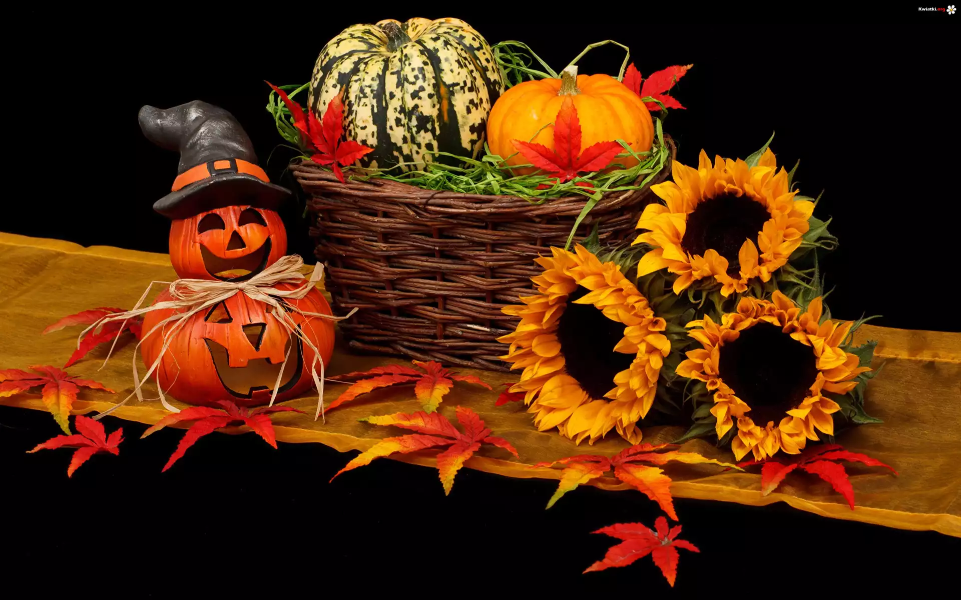 Kwiat Kosz, Słoneczniki, Dynie, Halloween