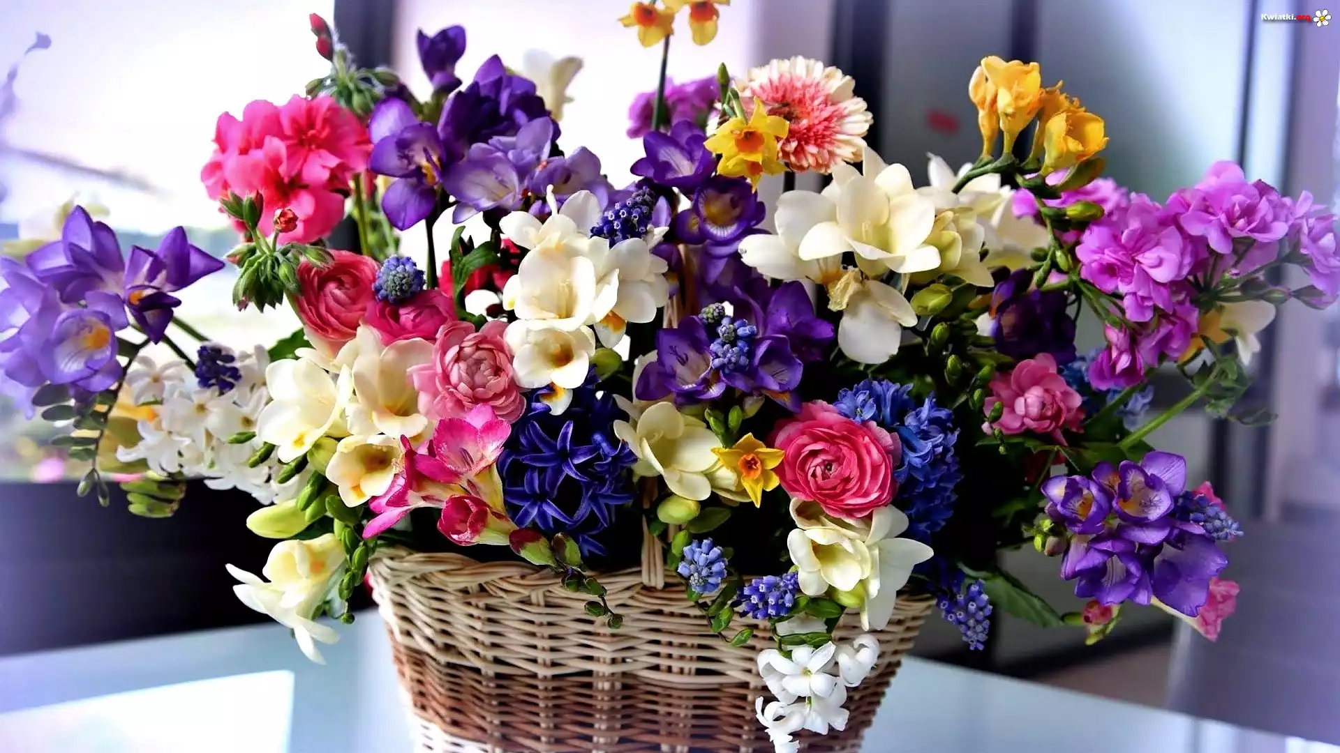 Kwiat Kosz, Kwiatów, Frezje, Róże