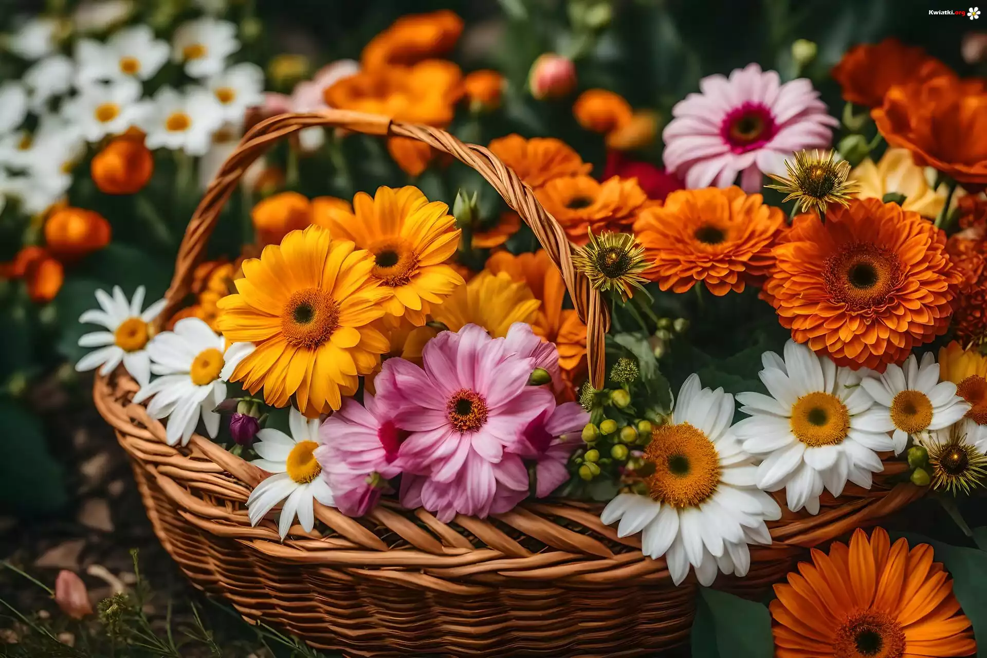 Kolorowe, Kwiaty, Gerbery, Kosz - Zdjęcia