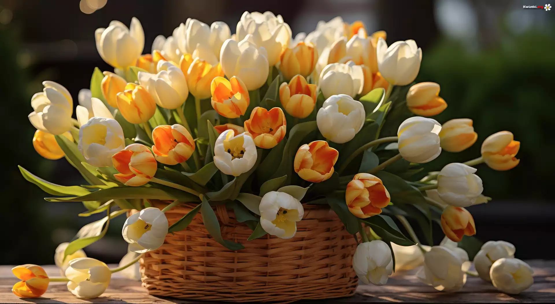 Kompozycja, Kolorowe, Tulipany, Kosz - Zdjęcia