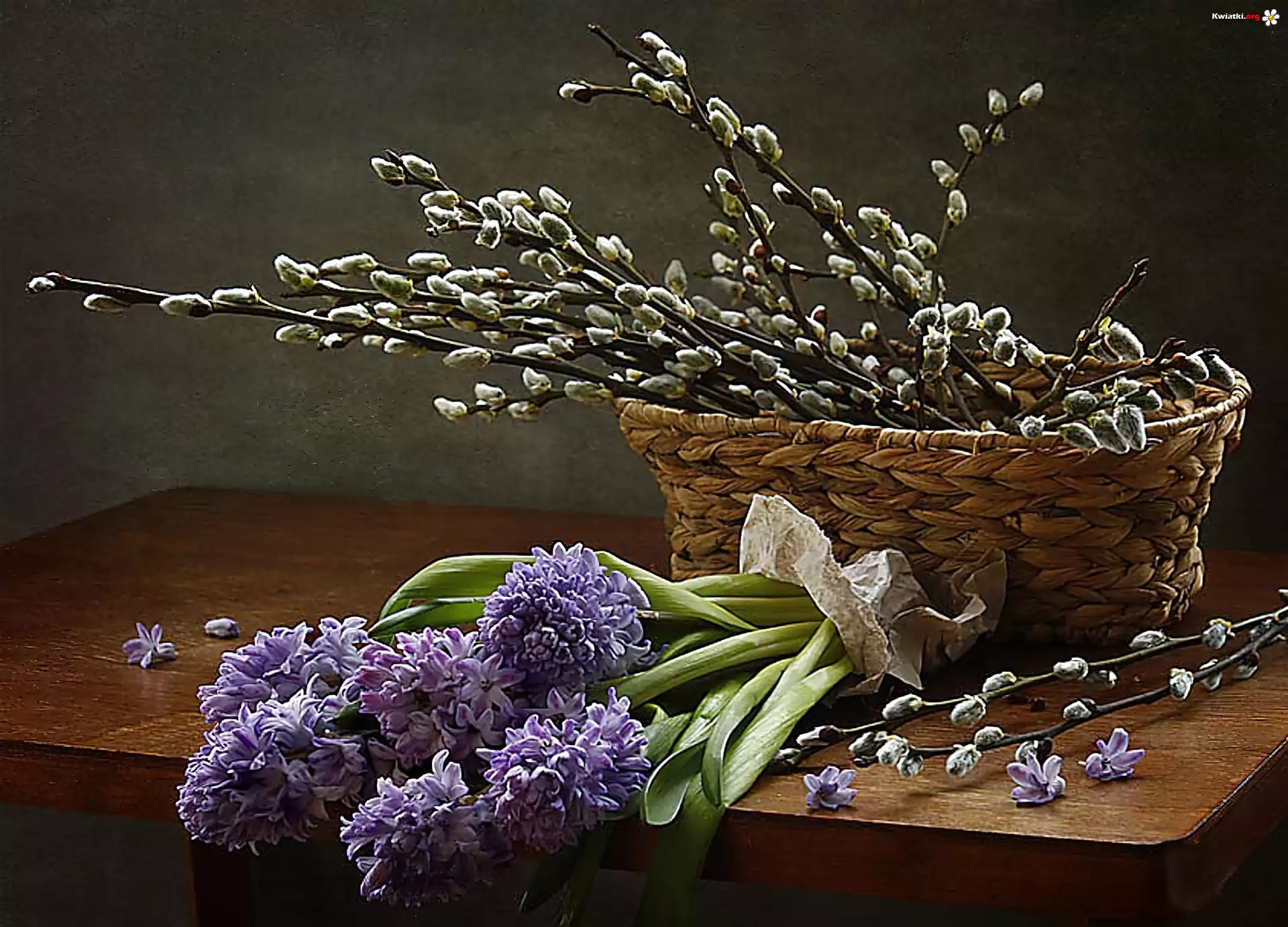 Kosz, Bazie, Stół, Kwiaty - Zdjęcia