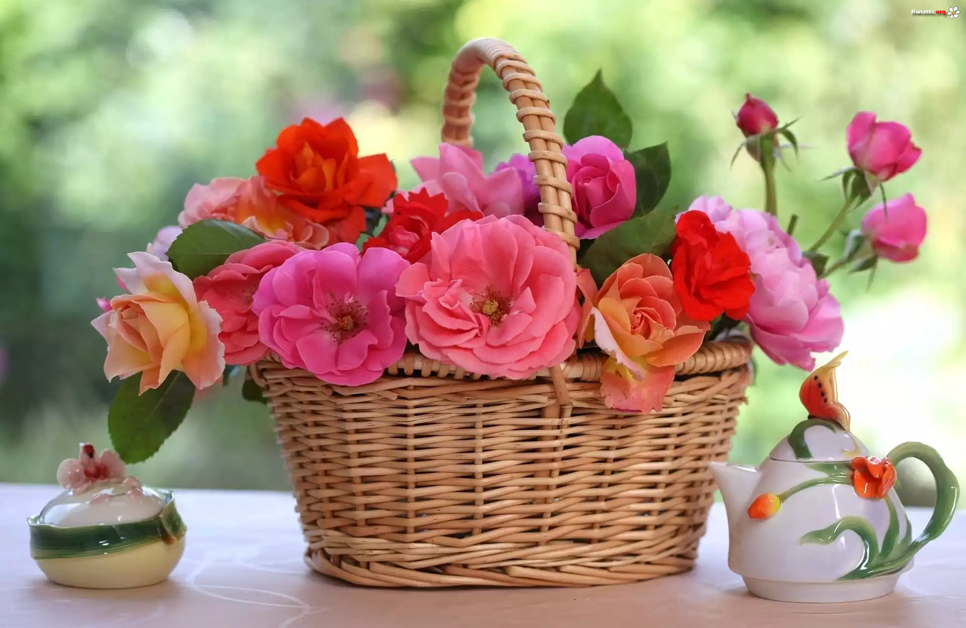 Wiklinowy, Kosz, Róż - Zdjęcia