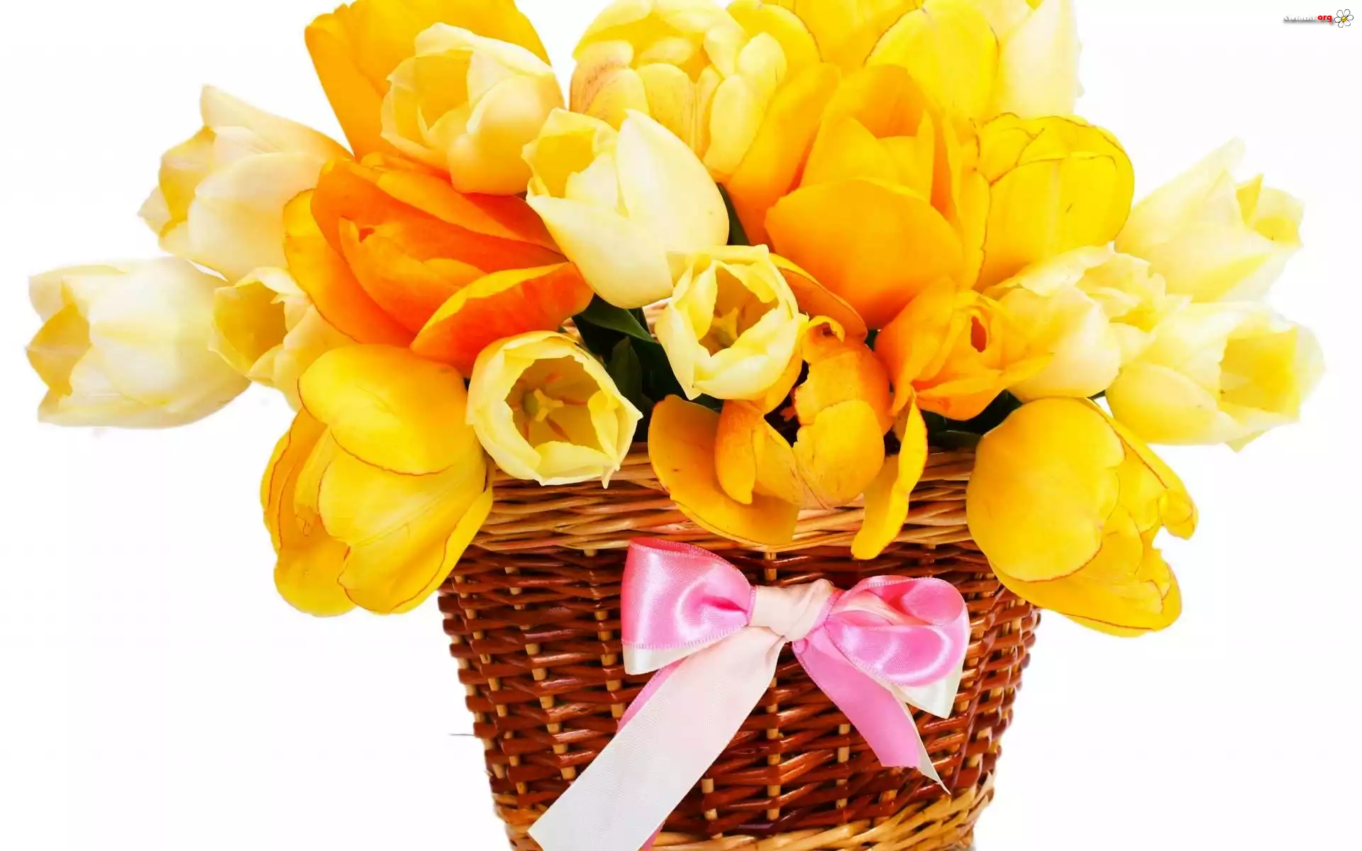 Kwiat Żółte, Tulipany, Koszyczek, Kokarda