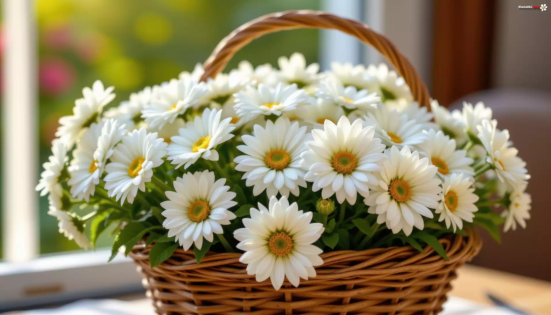 Kwiaty, Białe, Chryzantemy, Koszyk, Wiklinowy, AI - Zdjęcia