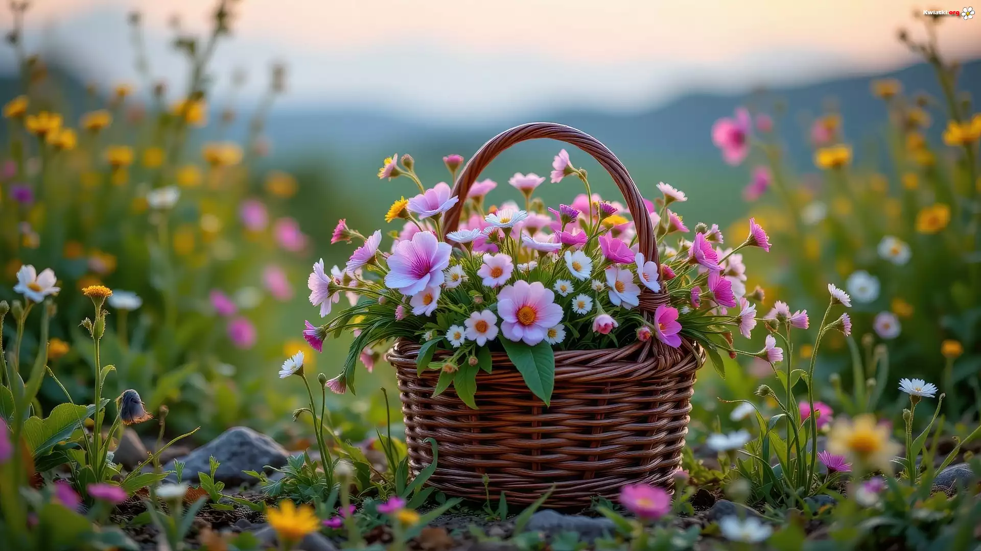 Różowe, Białe, Kwiaty, Koszyk, Grafika, AI - Zdjęcia
