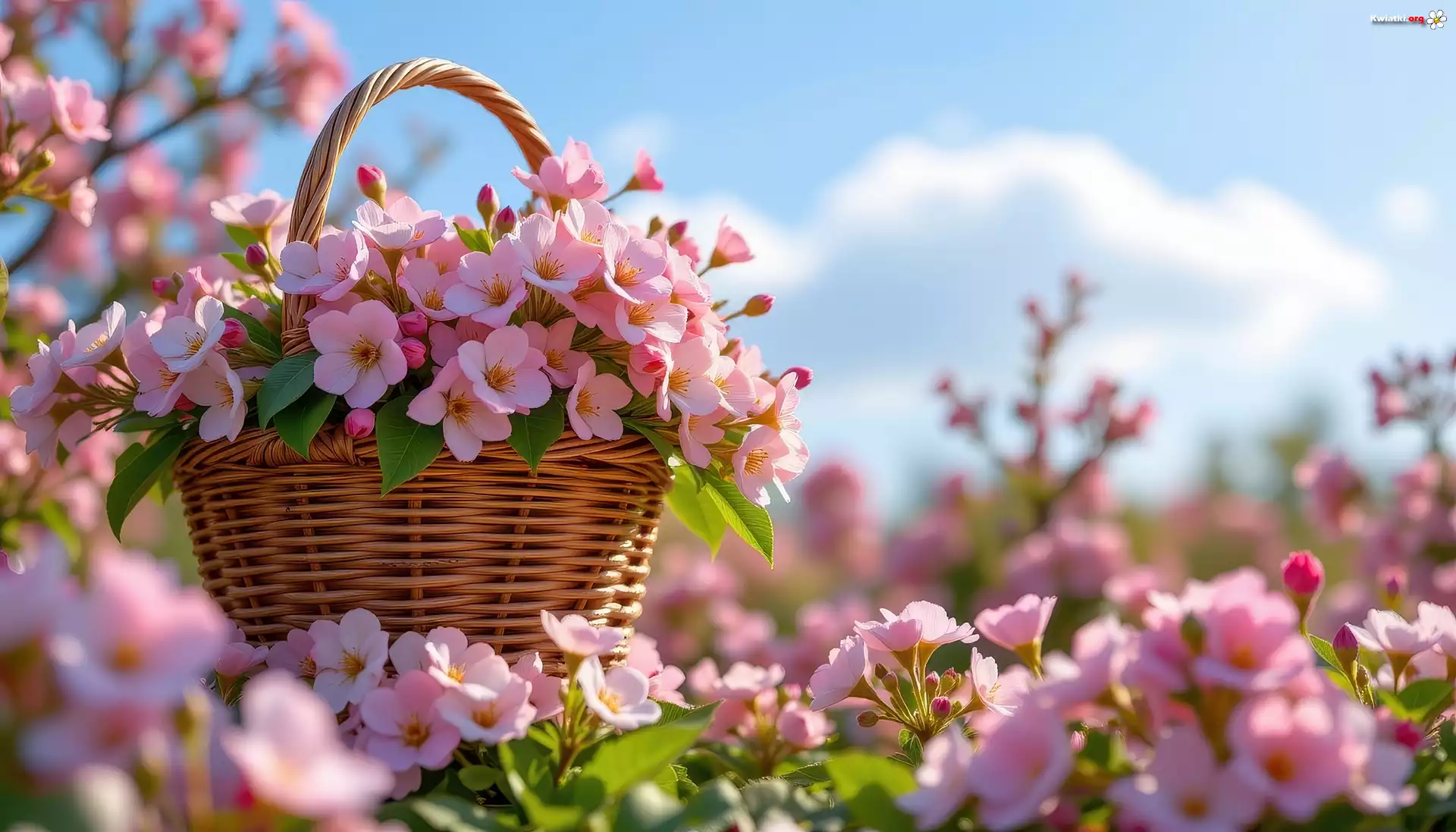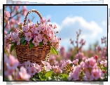 Różowe, Kwiaty, Bukiet, Koszyk, Niebo, Grafika AI - Zdjęcia