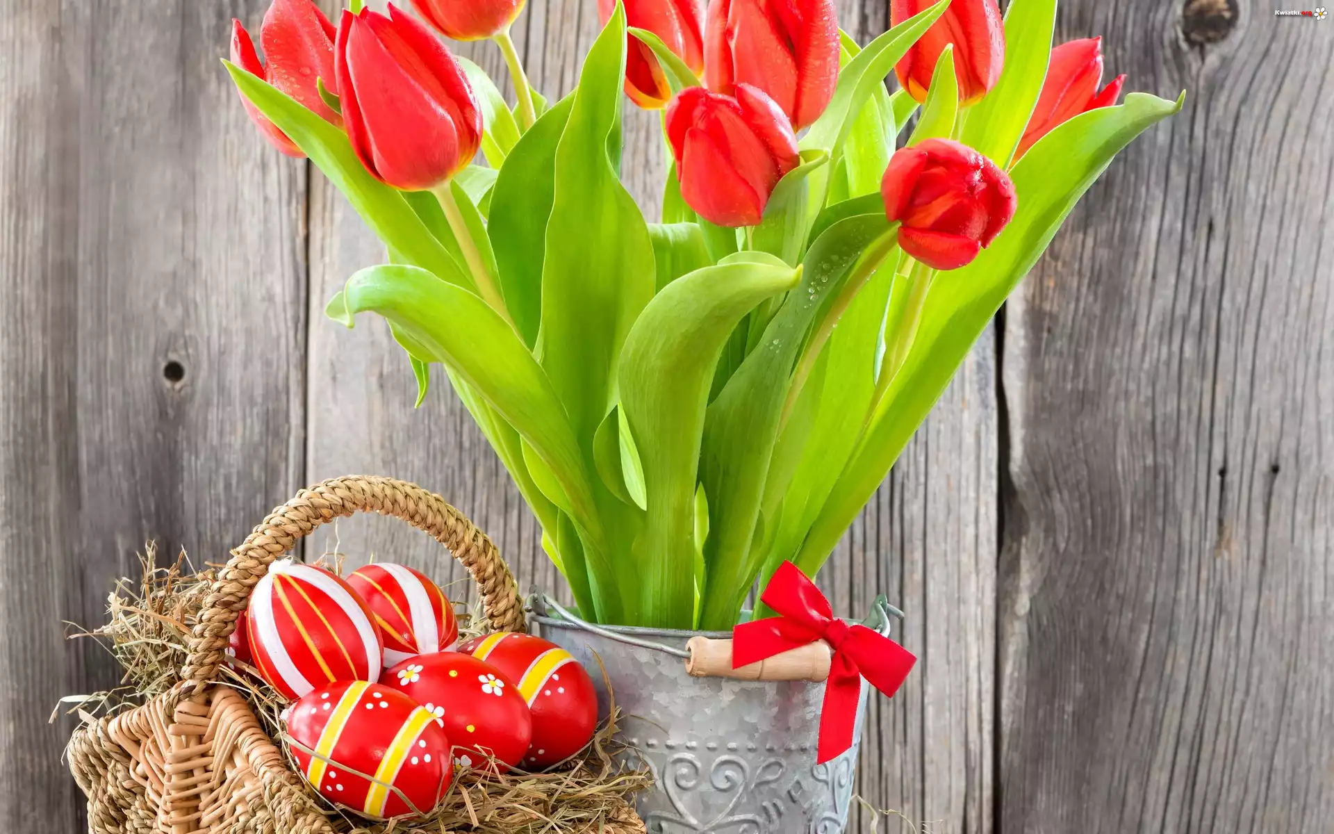 Kwiat Koszyk, Pisanki, Tulipany, Kokarda, Wiadro