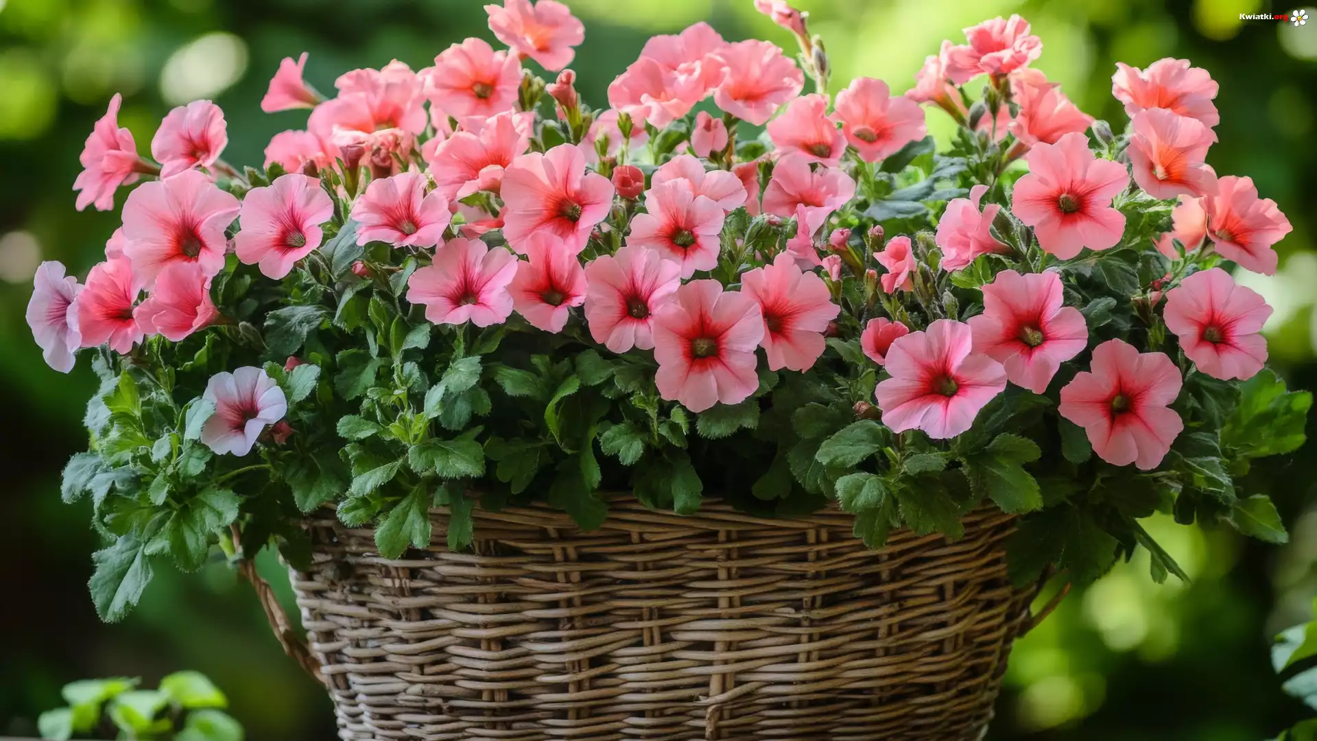 Kwiat Kwiaty, Różowe, Petunie, Koszyk