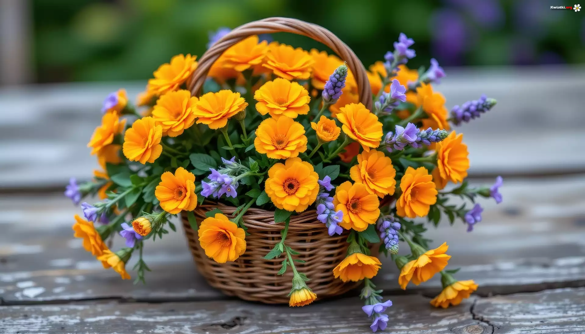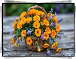 Koszyk, Pomarańczowe, Kwiaty - Zdjęcia