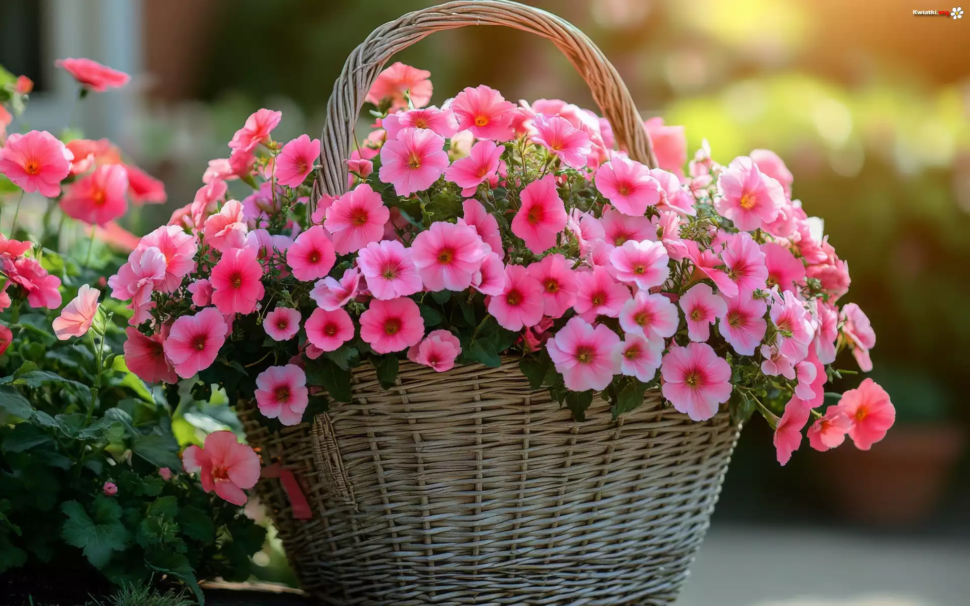 Kwiat Kwiaty, Petunie, Różowe, Koszyk