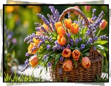 Kwiaty, Lawenda, Tulipany, Koszyk - Zdjęcia