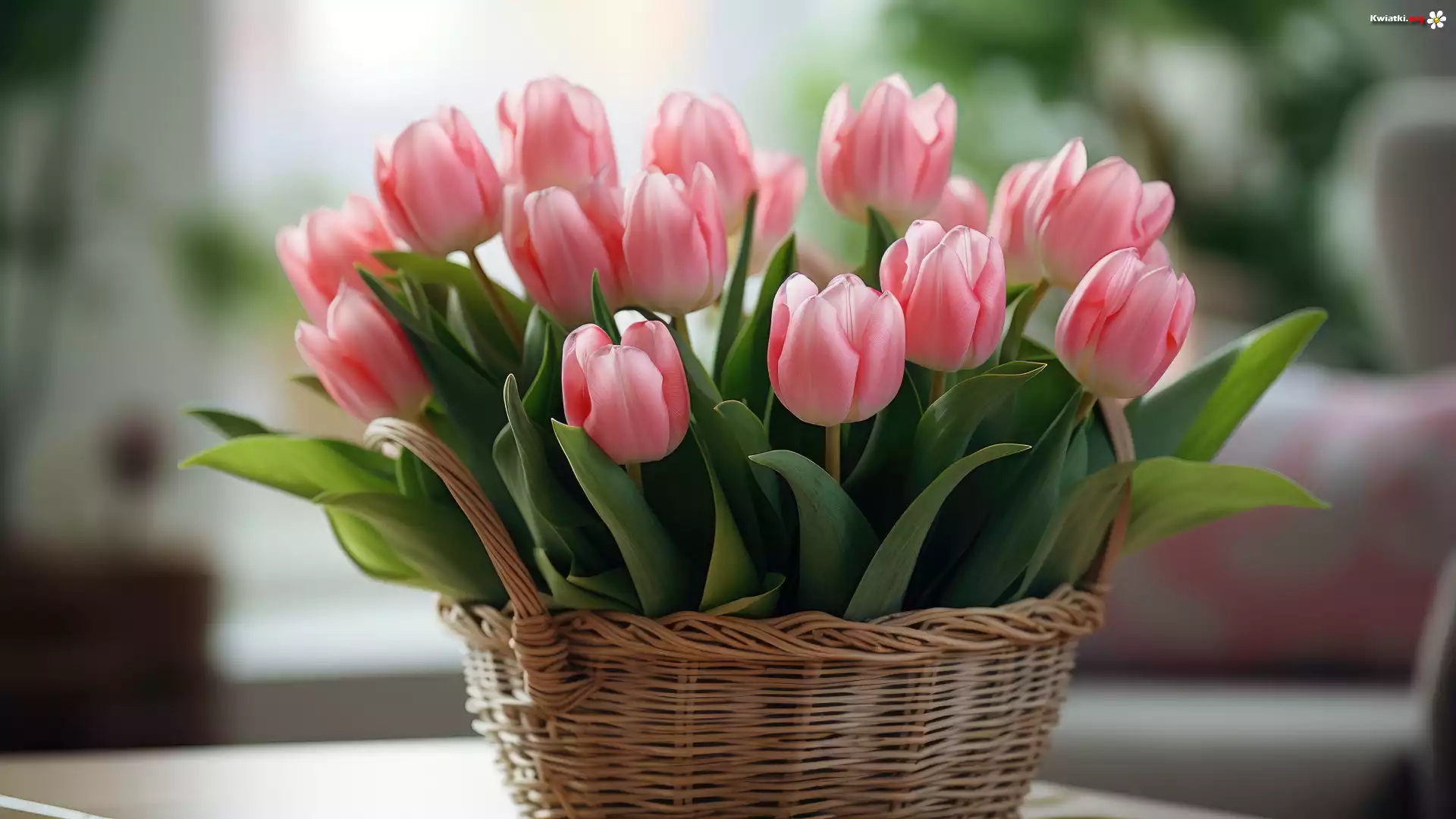Kwiaty, Różowe, Tulipany, Koszyk - Zdjęcia