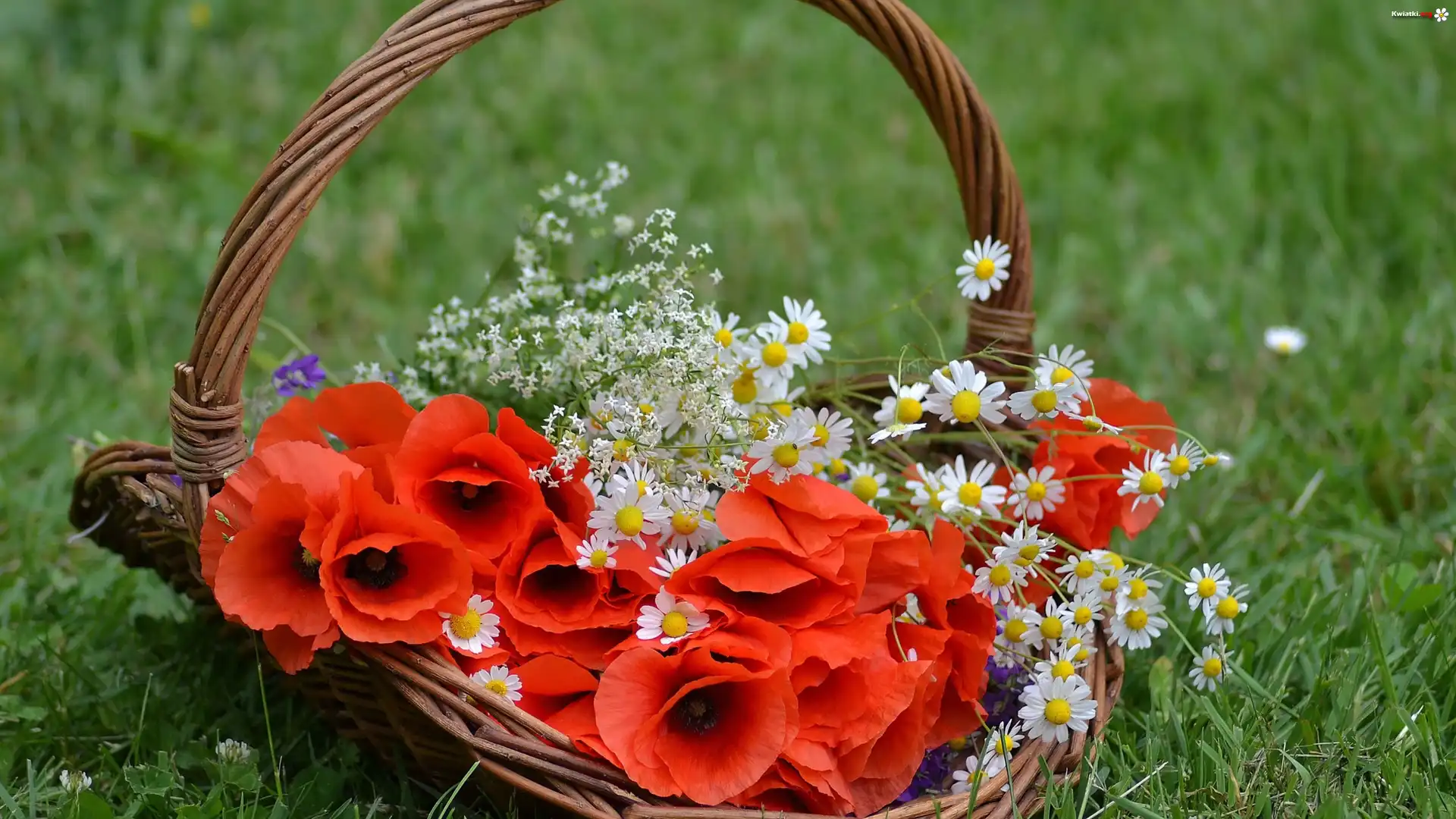 Koszyk, Bukiet, Maki, Rumianki - Zdjęcia