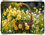 Wiklinowy, Koszyk, Narcyzy żonkile, Stokrotki - Zdjęcia