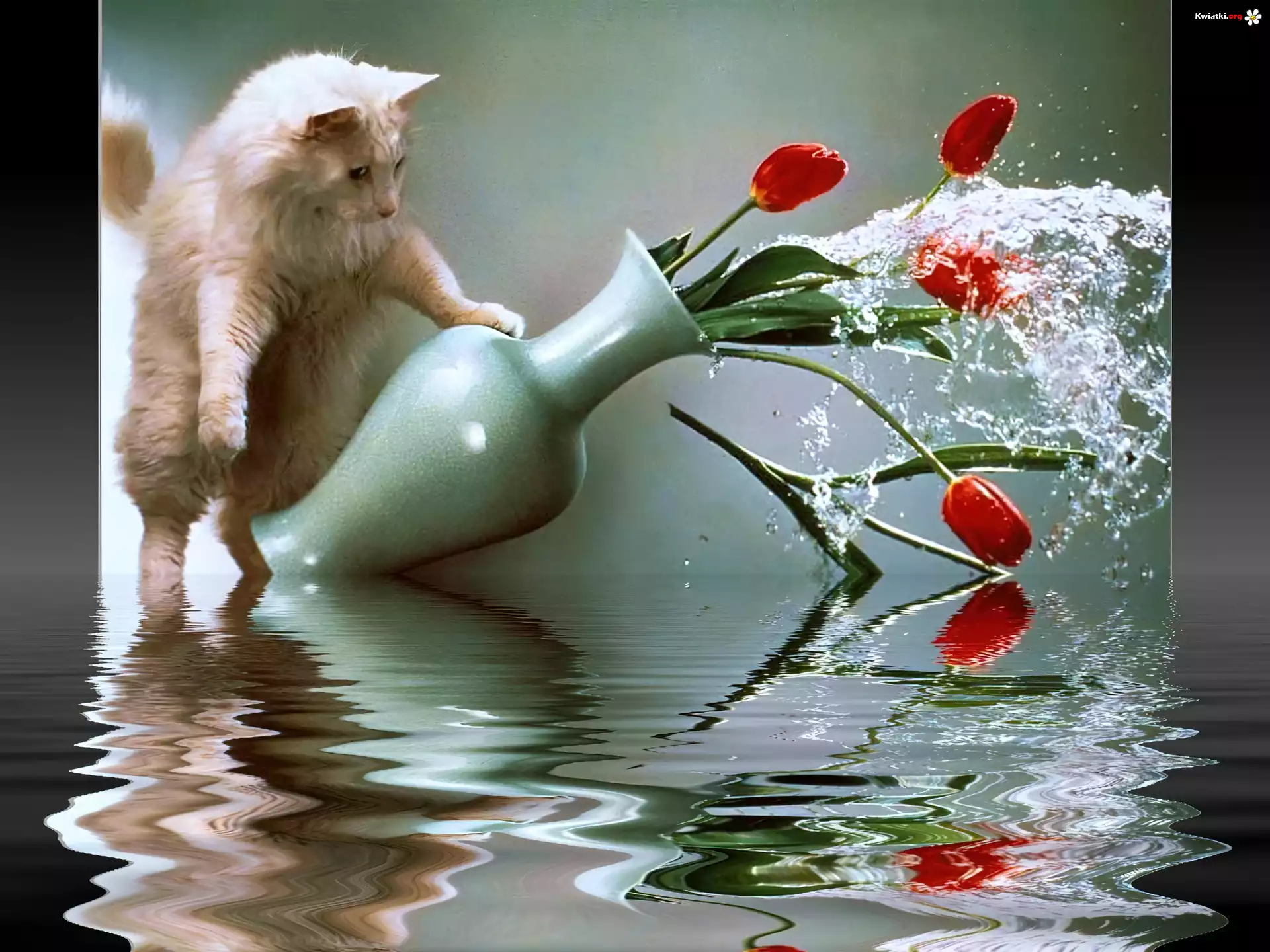 Kwiat Kot, Rozrabiaka, Wazon, Tulipany, Woda
