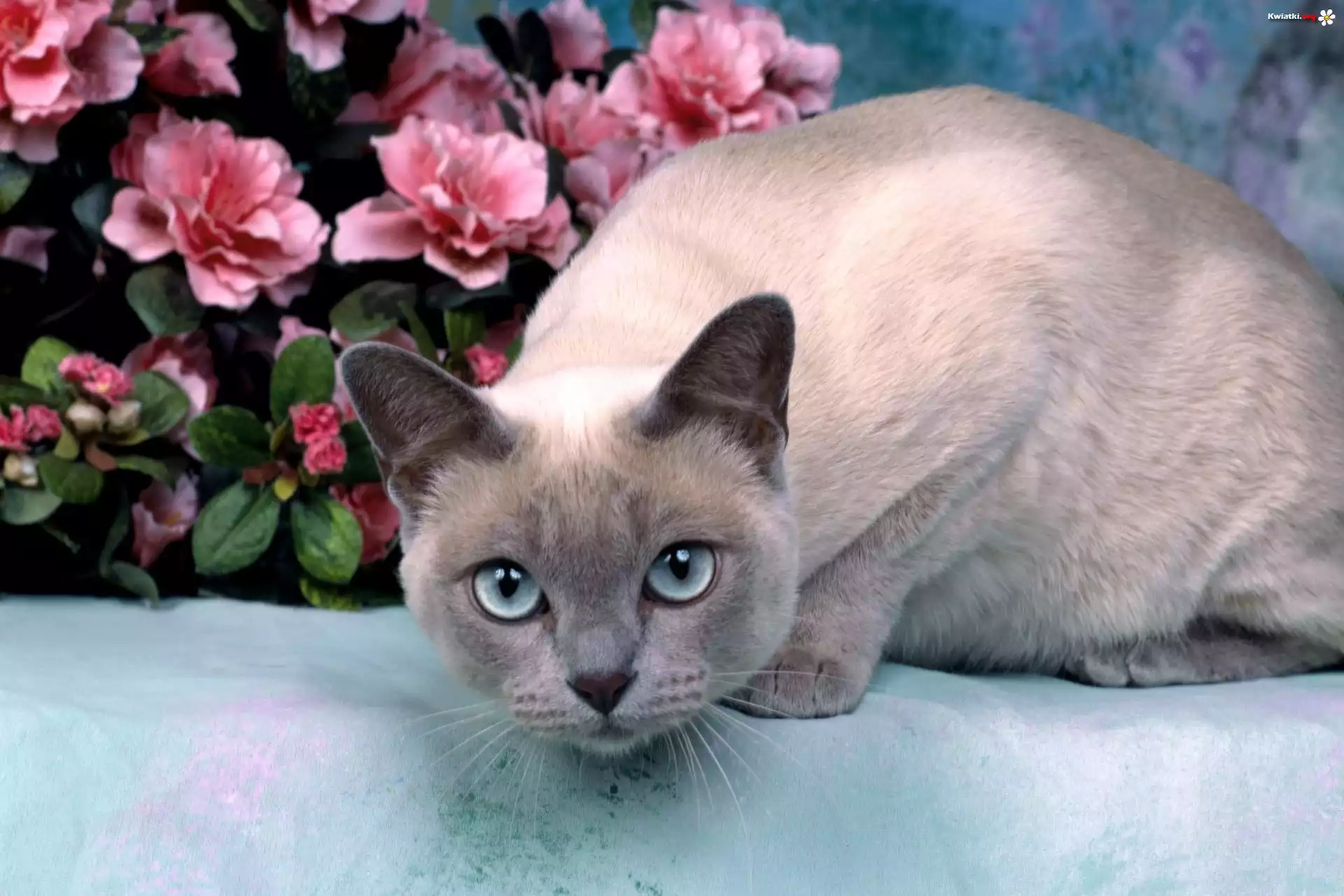 Kotek, Niebieskie, Oczy, Kwiatki - Zdjęcia
