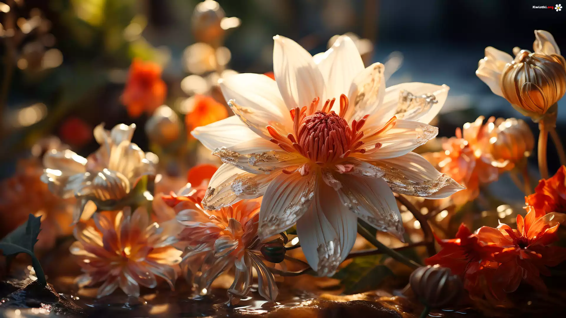 Kwiat Kwiat, Kremowy, Pręciki, Pąki, Grafika